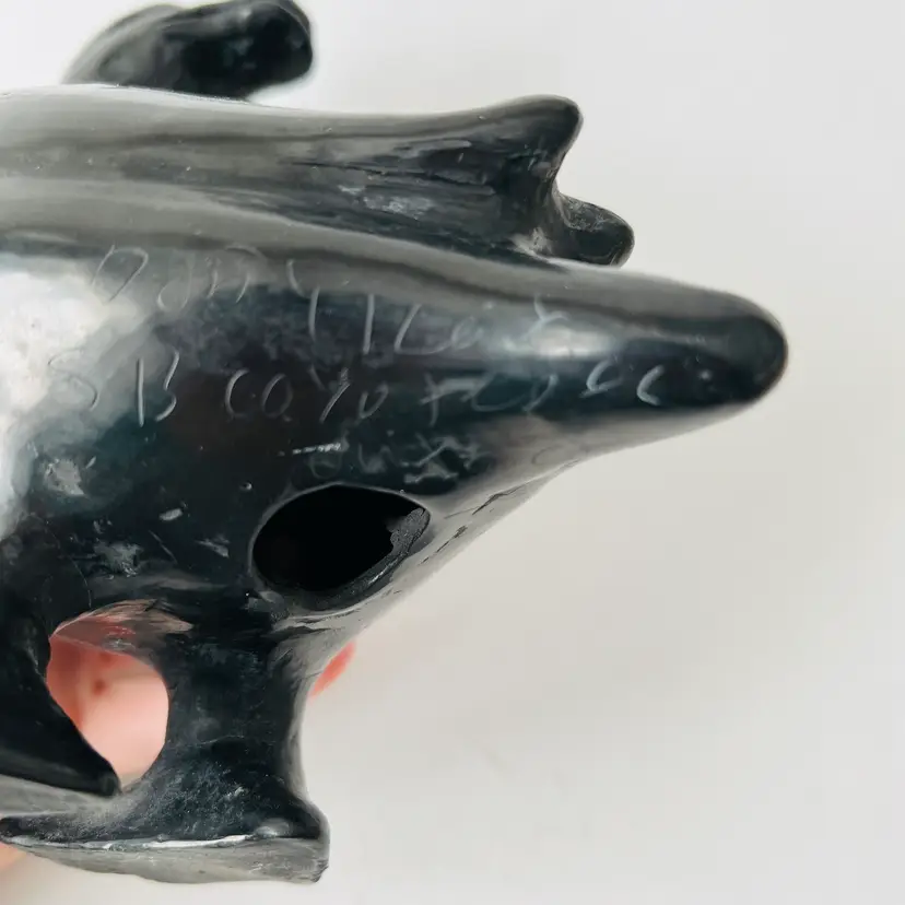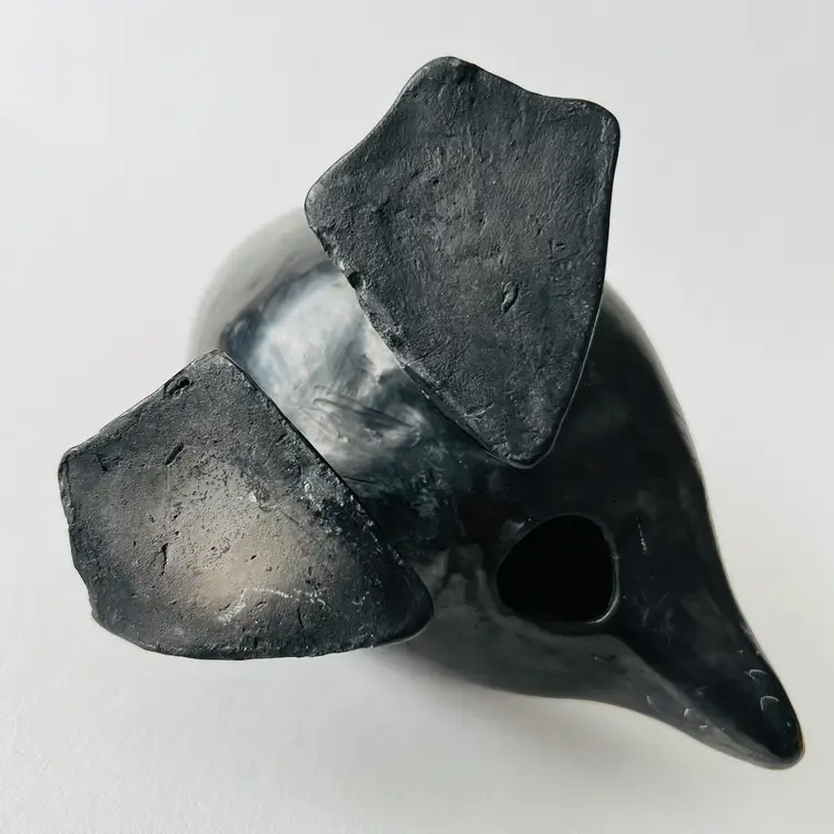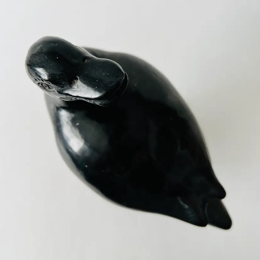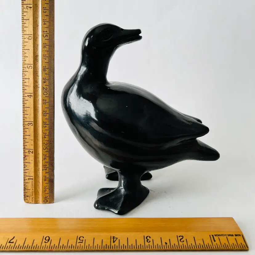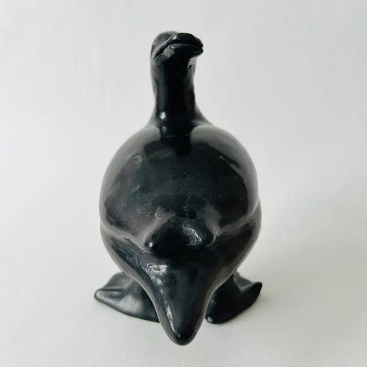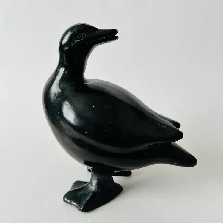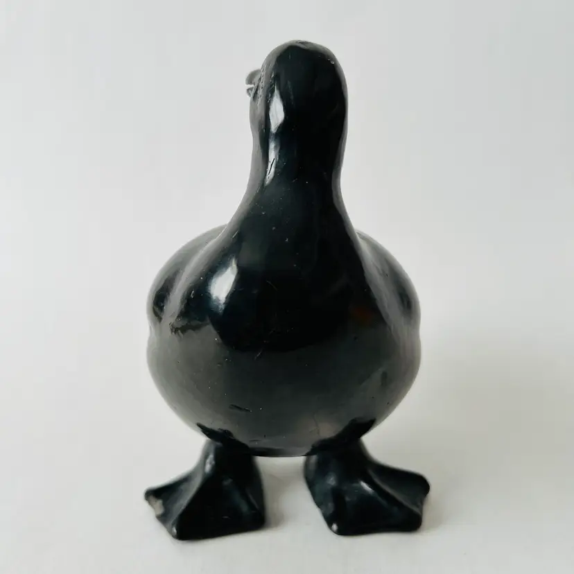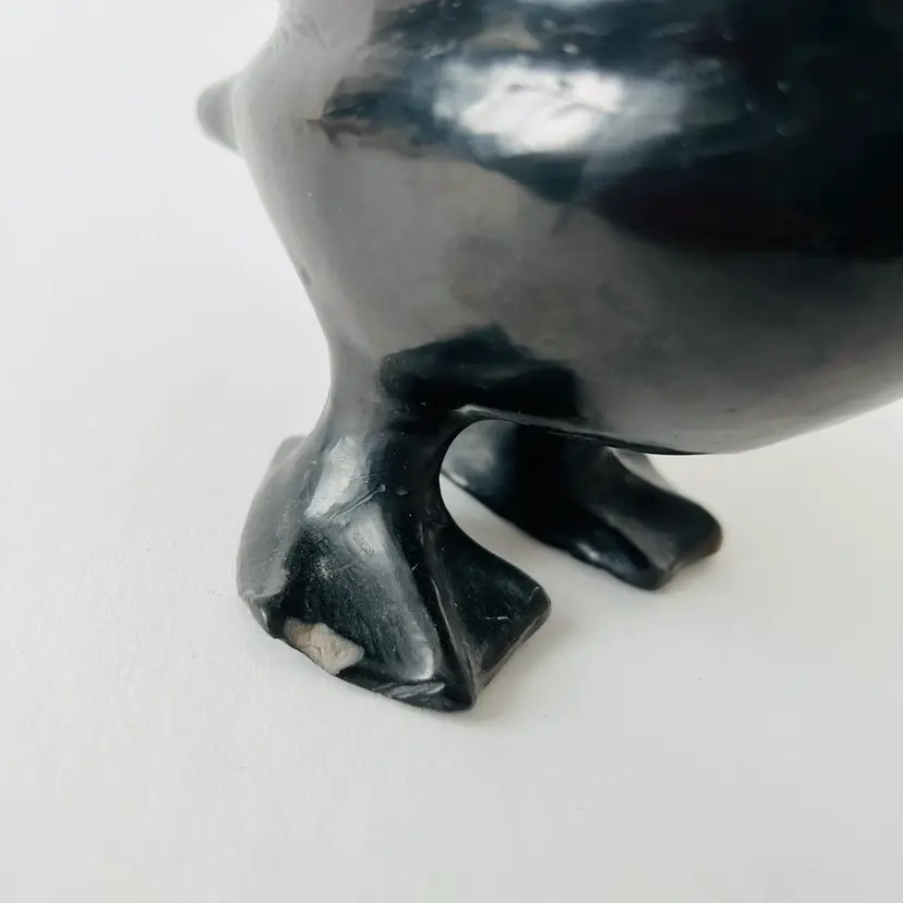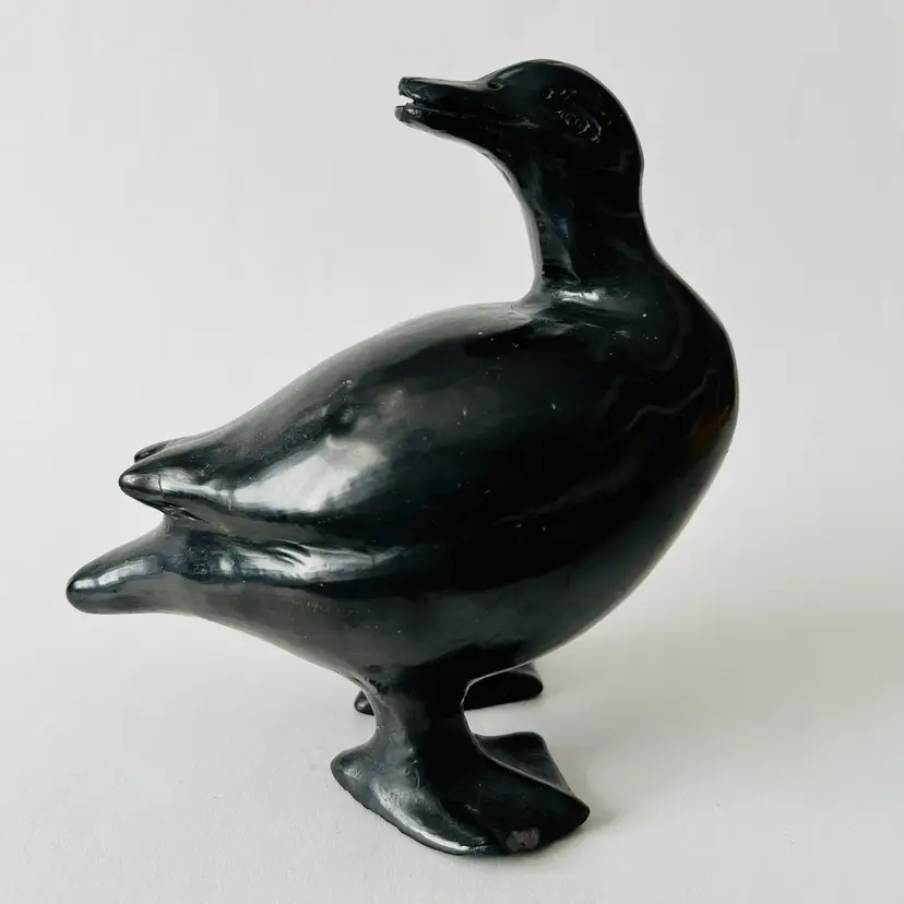 A chip to the duck's foot. A lighter spot on the duck's chest.