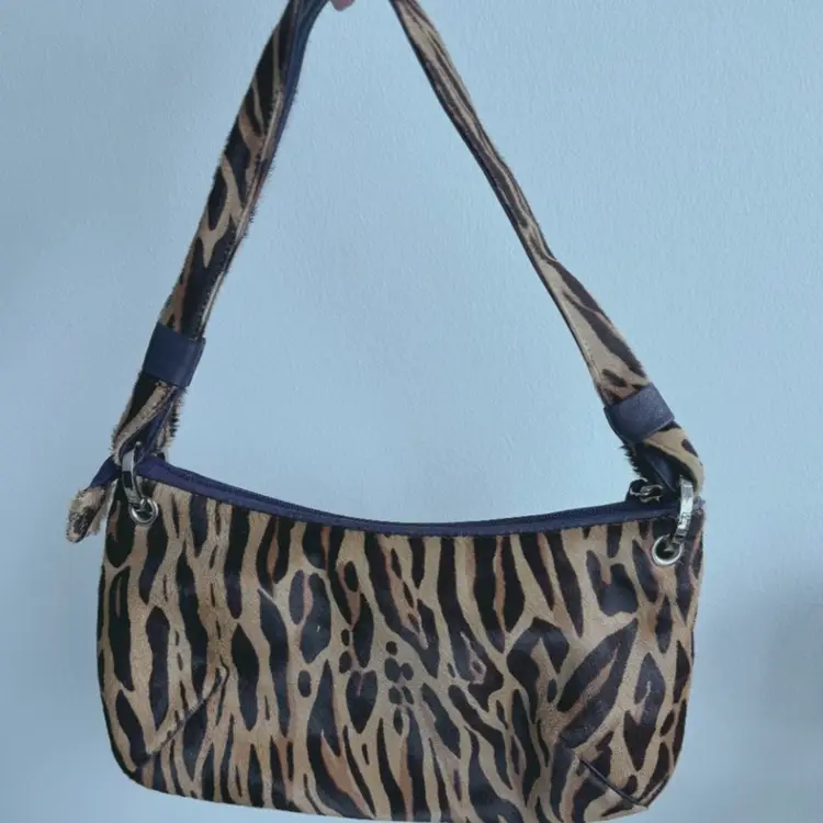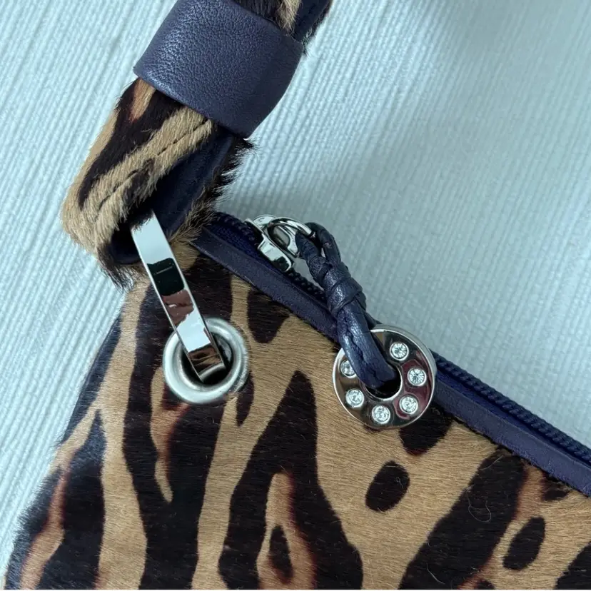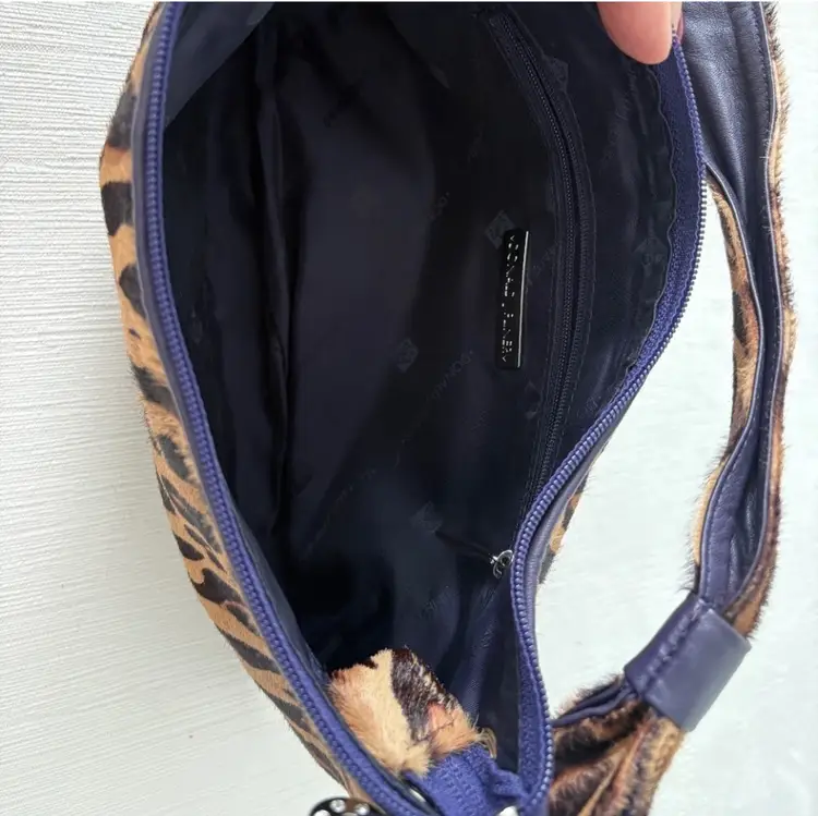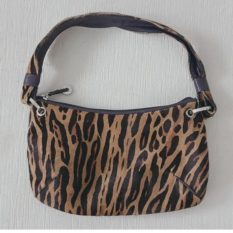 Donald J Pliner haircalf shoulder bag with animal print. Genuine haircalf leather with leather trim and silver hardware. Classic early 2000s / Y2K style. 12" length 7" height New without tags. Excellent condition.