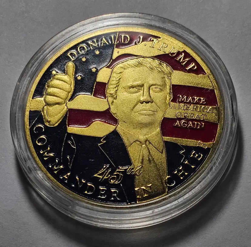 The product is a Presidential Seal featuring the slogan "Let's Make America Great Again" from Donald Trump's 2020 presidential campaign. This collectible item showcases Trump's campaign theme of politics and his vision for the United States as the 45th President. It is a symbolic representation of his campaign and a piece of historical memorabilia for those who supported his candidacy.