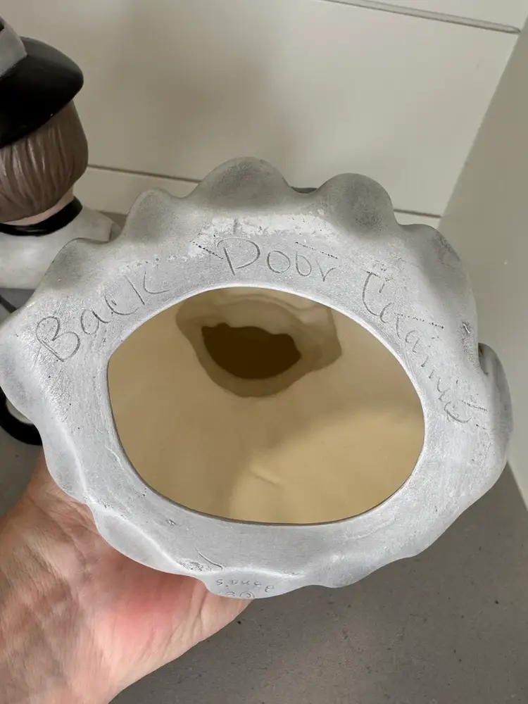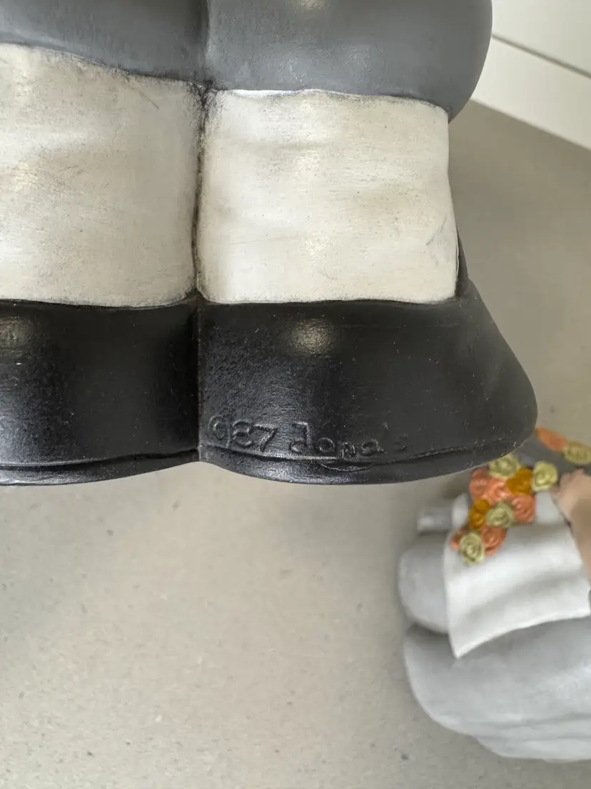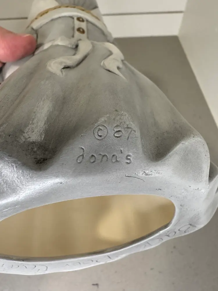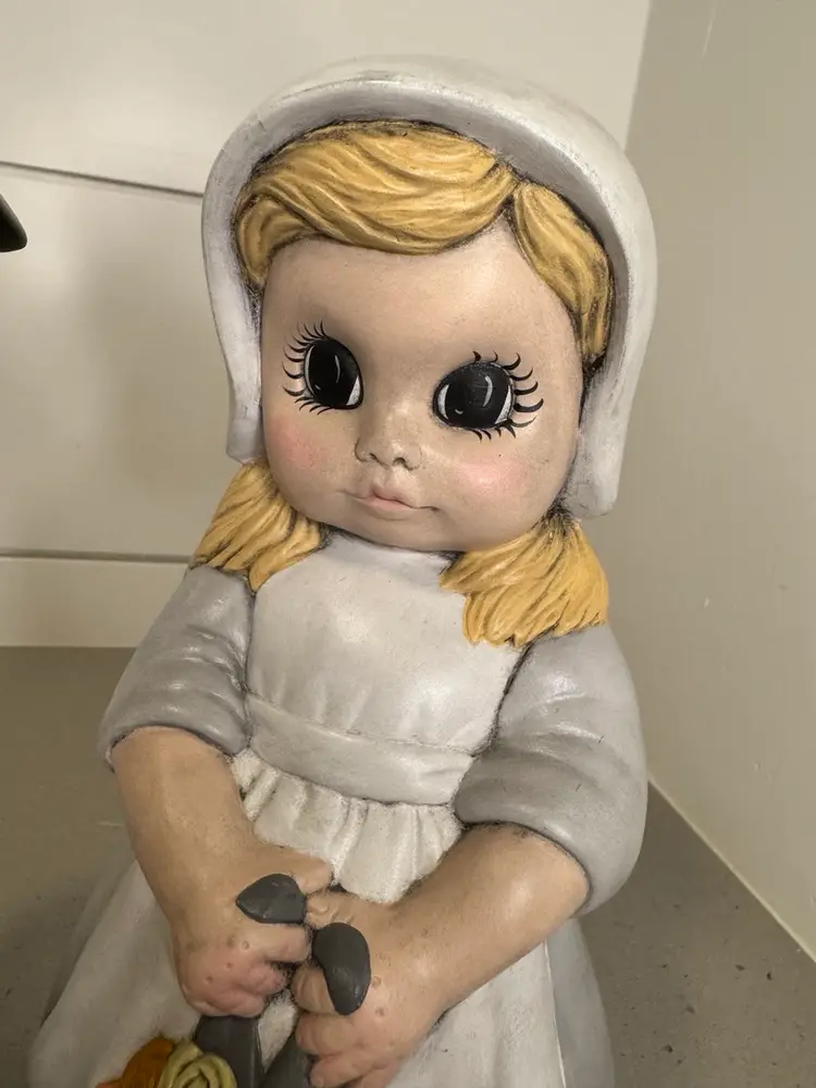 This couple is eerily beautiful Their anthropomorphic style eyes will haunt you forever Handpainted in grays, corals & reds, you can keep this decor out for Halloween & Thanksgiving Boy measures approximately 10“ tall & 4.5” at the base Girl measures approximately 9” tall & 5” at the base Both display quality workmanship and are in excellent vintage condition with no chips, cracks or repairs Priced & sold as a set