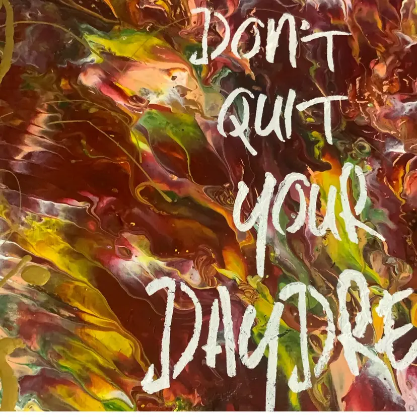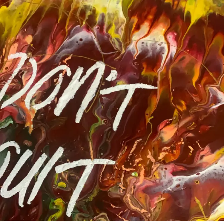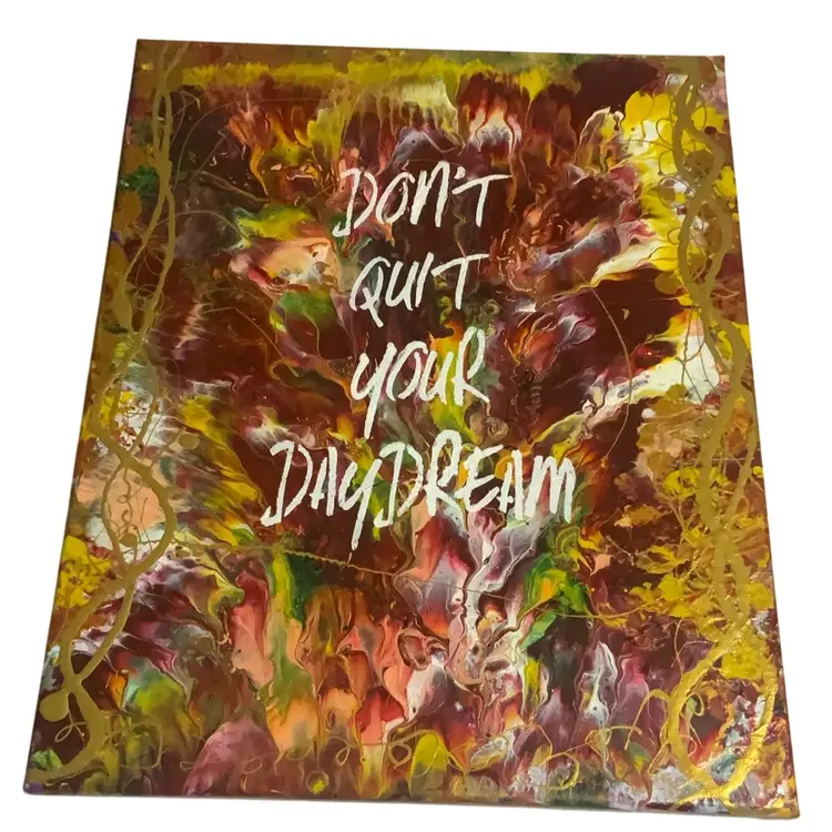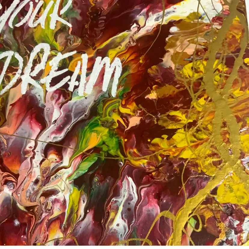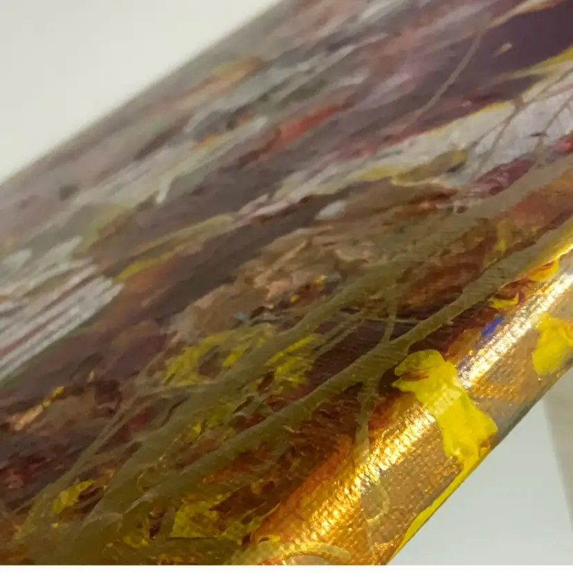 New artwork. On 16” by 20” stretched canvas. Metallic gold and burgundy paint