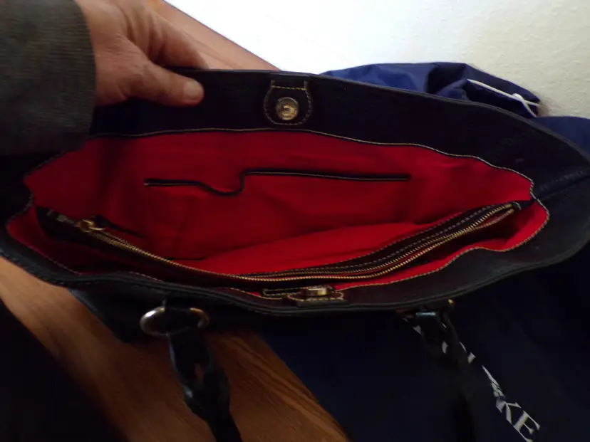 The interior features the brand’s signature red lining and plenty of pockets to keep everything organized.