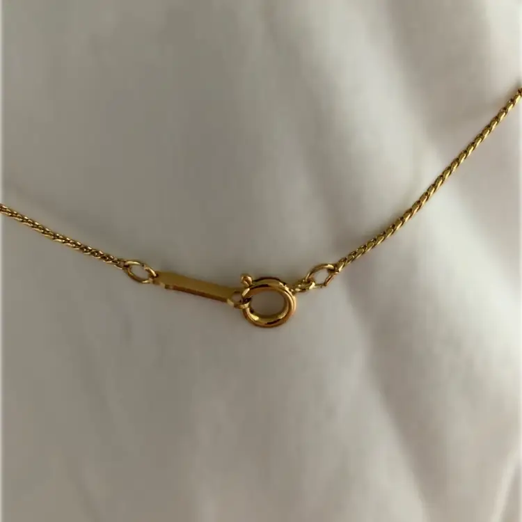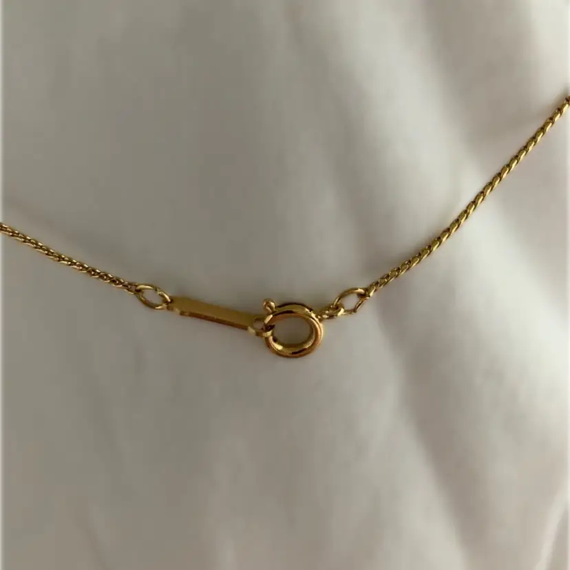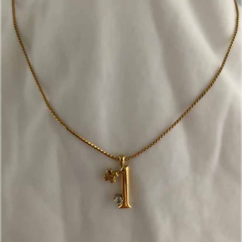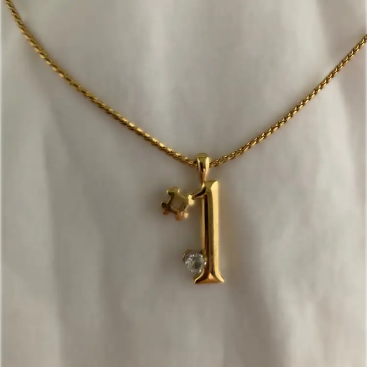 1960’s D’Orlan #1 gold pendant necklace. The pendant is 22k triple plate with Australian crystal accent. The chain is ragged and measures 16”.