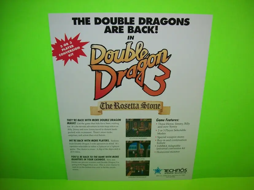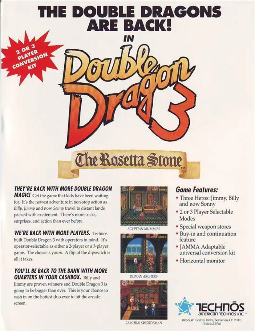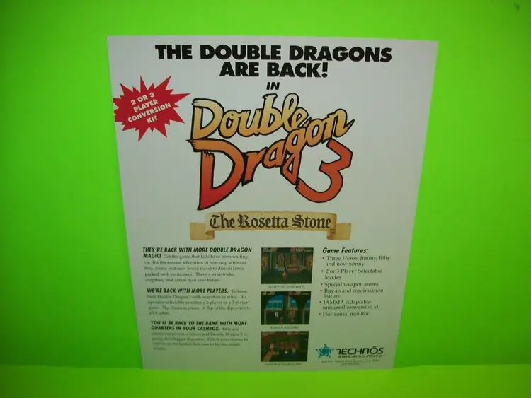 Arcade: Flyer Theme: Martial Arts Modified Item: No Country/Region of Manufacture: United States Original/Reproduction: Original Year: 1990 Game Title: Double Dragon 3 The Rosetta Stone Brand: Technos