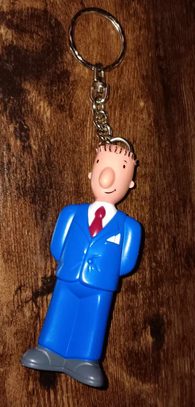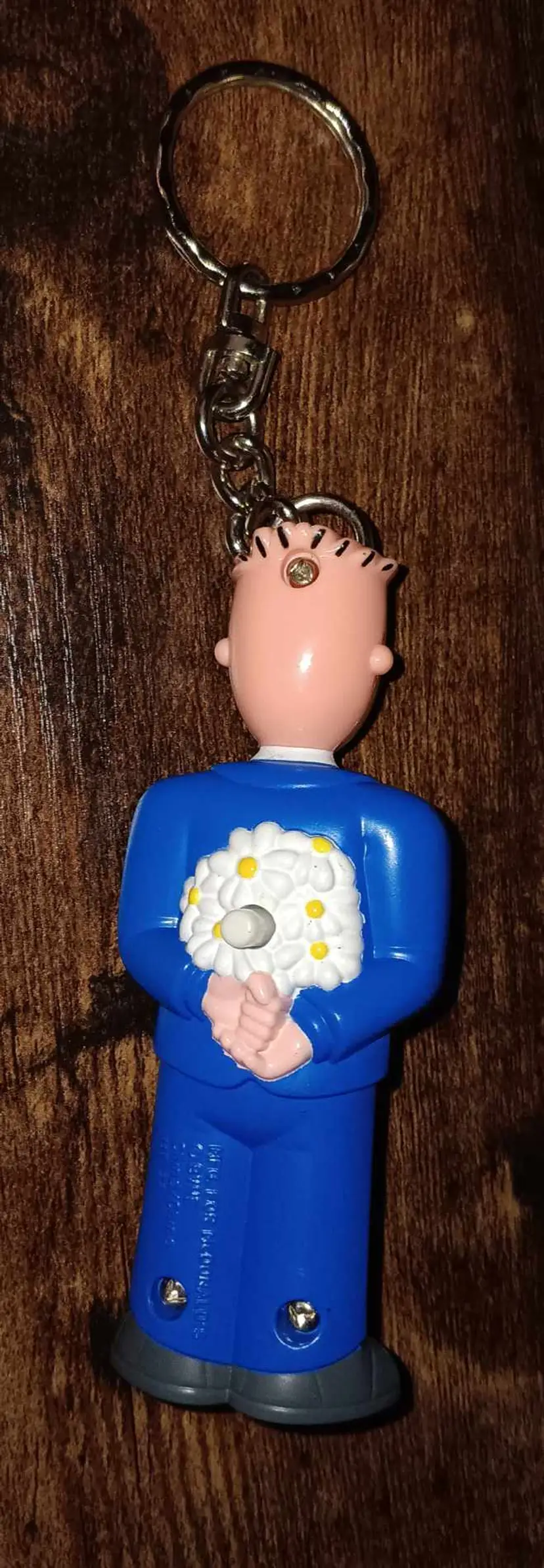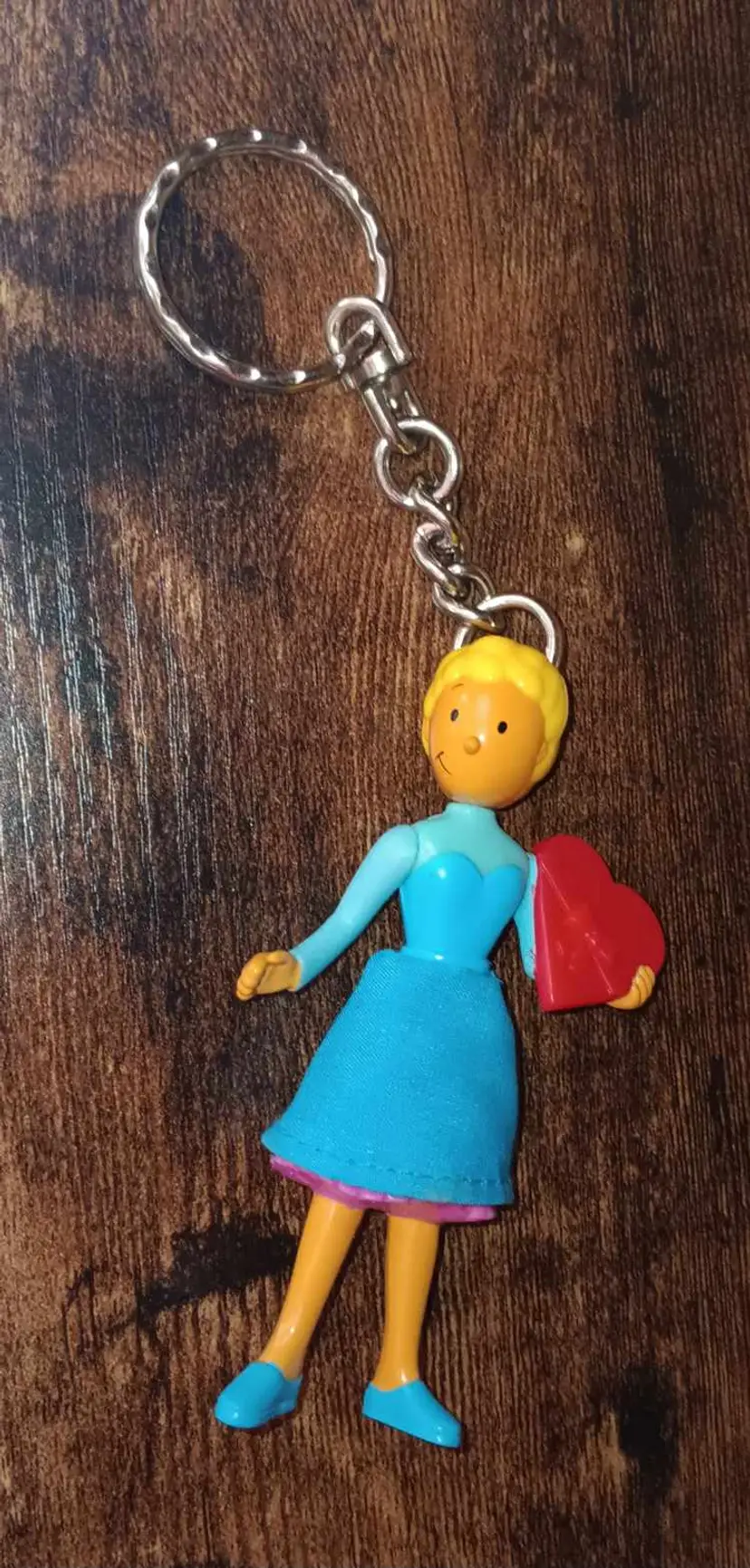 Doug and Patty Mayo keychain set! Patty Mayonnaise keychain. Patty is holding a heart box. In good condition with no damages. Patty measures 4 inches tall. The total length with keychain measures approx. 7 inches long. Doug keychain. Doug is wearing a suit holding flowers behind his back. The button on the back does nothing. In good condition with no damages. Doug measures 4 inches tall and the total keychain measures 7 inches long.