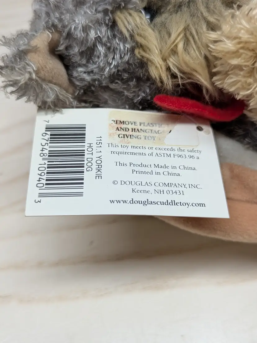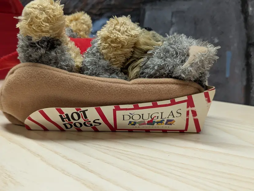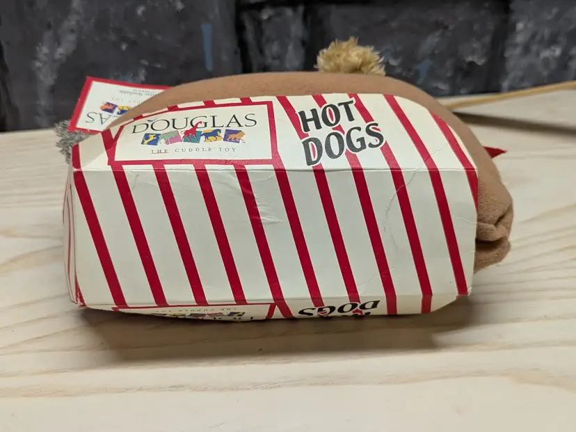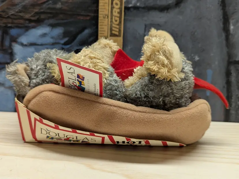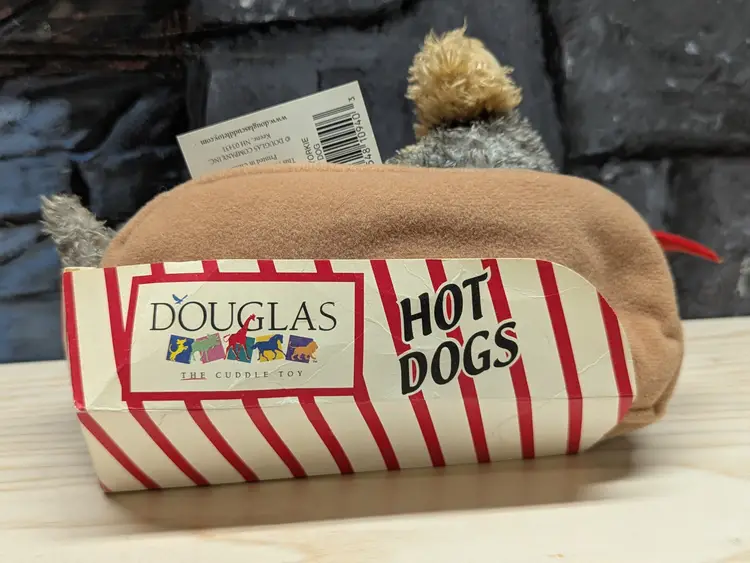 Vintage Douglas The Cuddle Toy 8" Yorkie Hot Dog Plush Puppy Ketchup Bun Hotdog So cute In it hod dog wrapper with tags. Very good condition Clean with no damage. no weird smells. Please check the photos for details. Comes from a smoke free home. We do have pets.