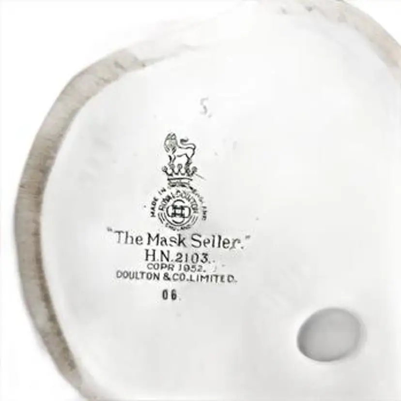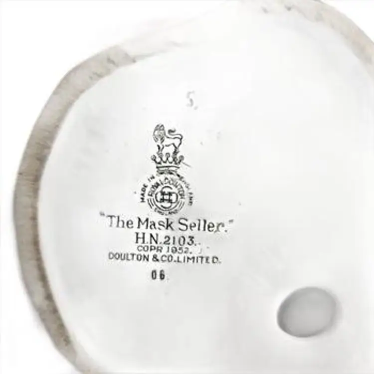 A tradition of craftsmanship still lives on in the Royal Doulton studios in which the Mask Seller HN2103 figurine was created. Designed by L. Harradine, it measures 8.5 inches in height, 4 inches in length, and 4 inches in width, and weighs approximately 1.5 lb. Mask Seller HN2103 was hand made and decorated in England, it is no longer in production and it is in mint condition free from any flaws, damage, or restoration. Pre-own with no original box or packaging.
