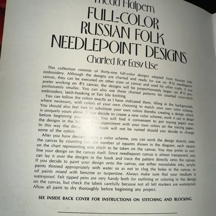 Dover Needlework Full Color Russian Folk Needlepoint Designs Frieda Halpern
