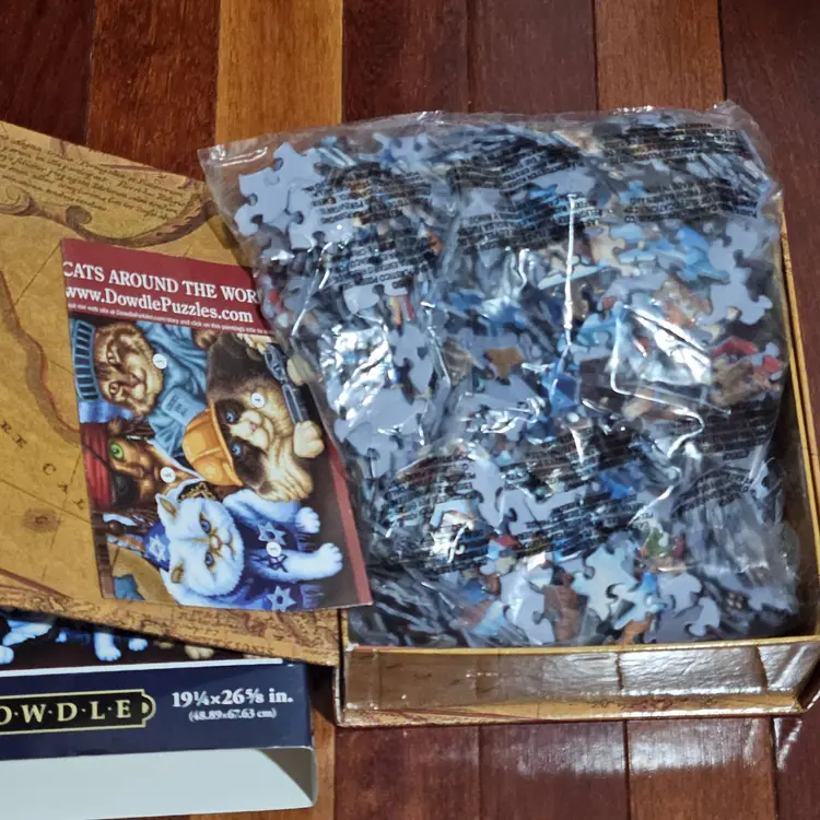New in Box, pieces still sealed in bag. Featuring a colorful array of cats, this puzzle is perfect for cat lovers and puzzle enthusiasts alike.