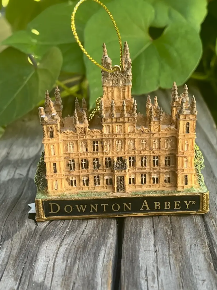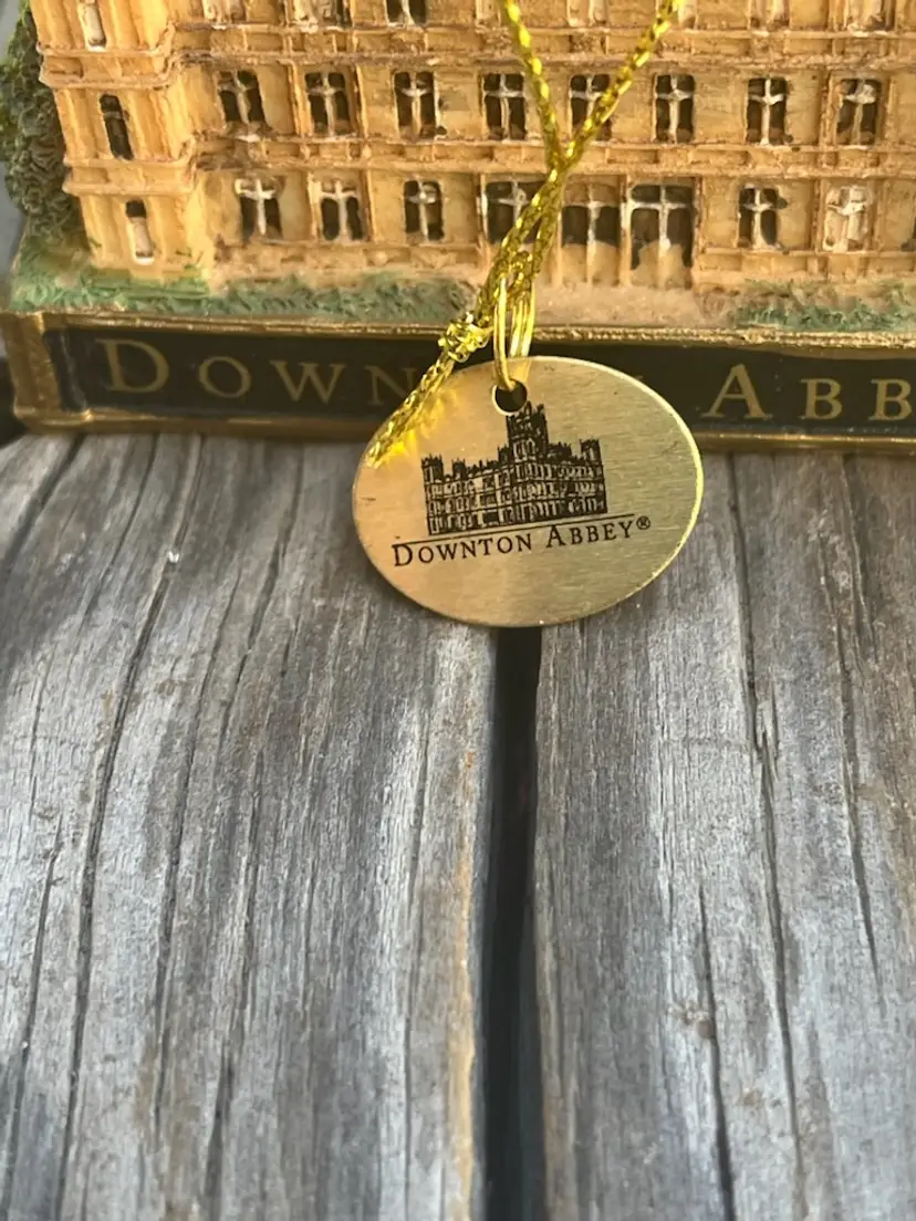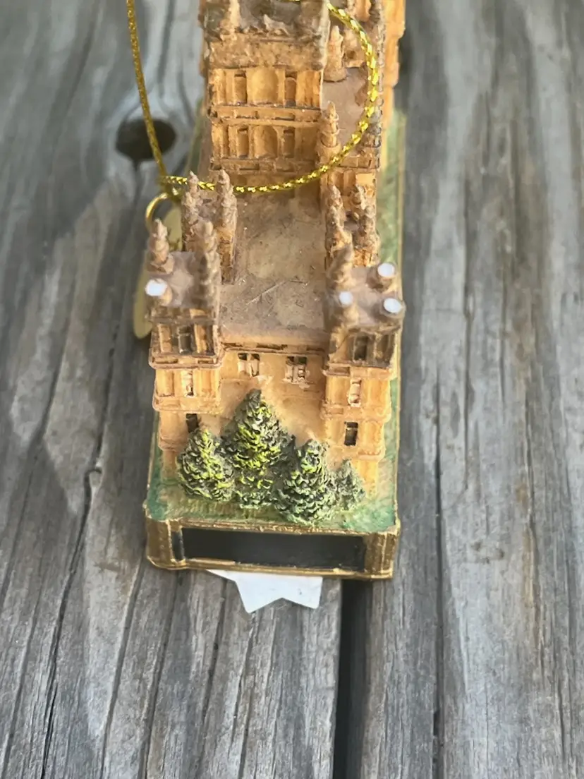 I believe it is resin. Original metal tag included. Approximately 2 3/4 inches tall and 1 1/8 inches wide.