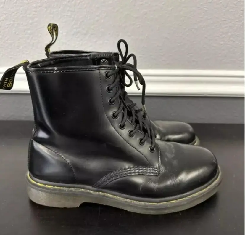 Dr Doc Martens Air Wair 11822 Black Leather Boots. Condition is Pre-owned.