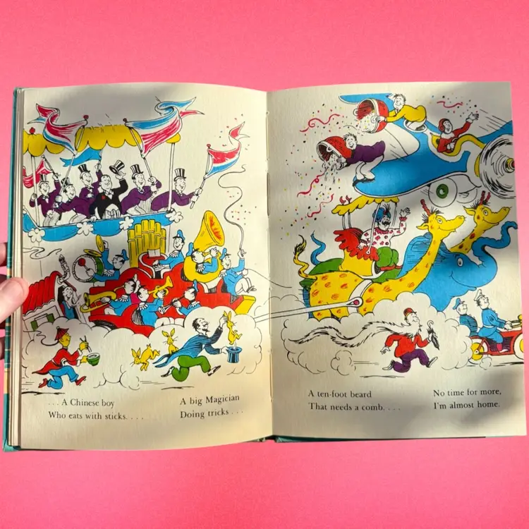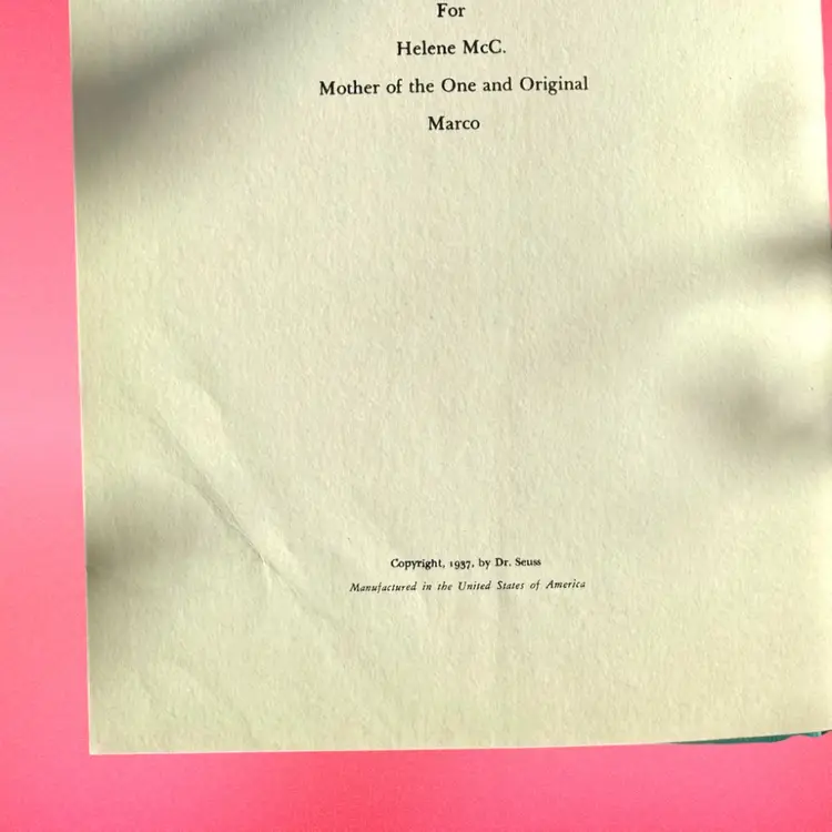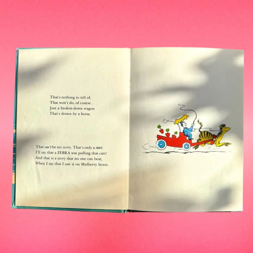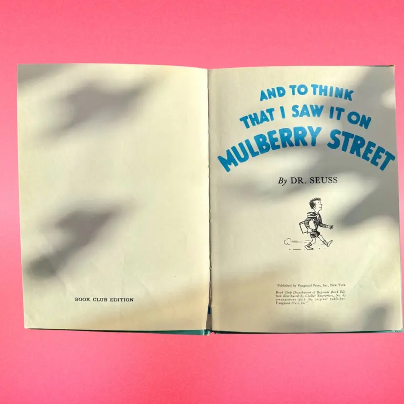6.75"x9.25". Copyright 1937 Dr. Seuss BOOK CLUB EDITION of “And to think I saw it on Mulberry Street”. In good vintage/used condition overall. Cover has some wear/scuffing consistent with age. Inside of front cover has “Sonya’s Book” written in pencil. Some pages may have some minor wrinkling. Please check photos thoroughly.