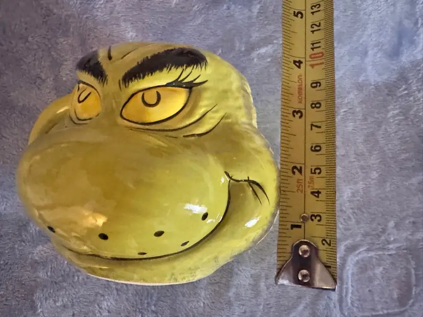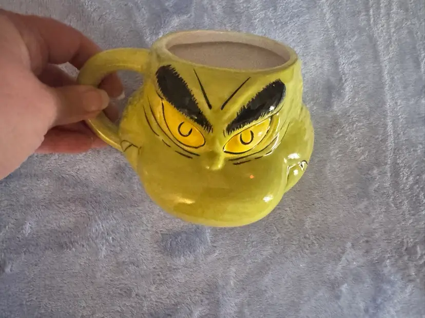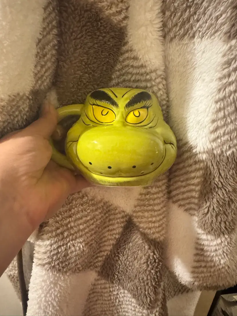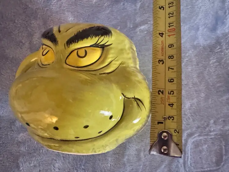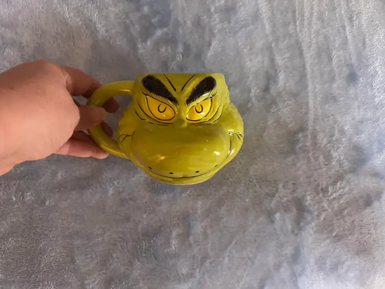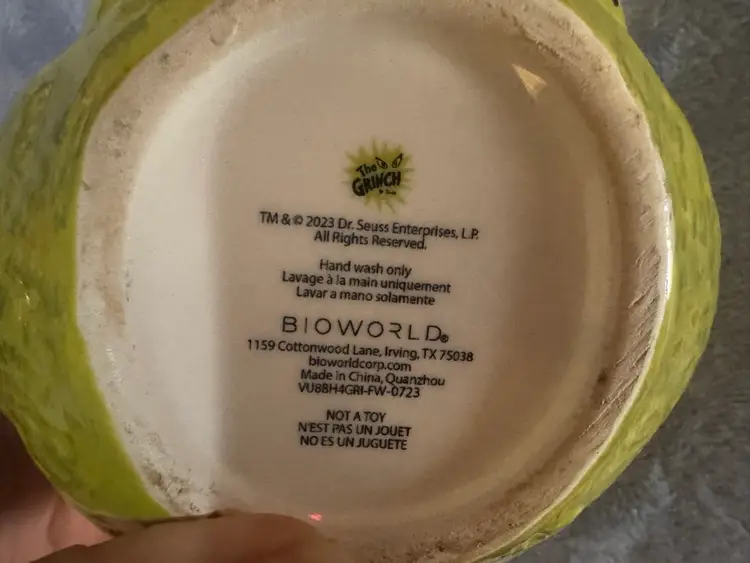 This Dr. Seuss How The Grinch Stole Christmas Coffee Tea Cup Mug by Bioworld is a large, round ceramic and porcelain mug featuring the iconic character of the Grinch. With a contemporary design, this mug is perfect for enjoying hot or cold beverages during the Christmas season. The green color and novelty pattern make it a charming addition to any collection of cartoon and TV show character memorabilia. Weighing 1 lb, this original Bioworld 2023 model is an ideal gift for any unisex adult fan of Dr. Seuss and The Grinch. NWOT. Used for display only.