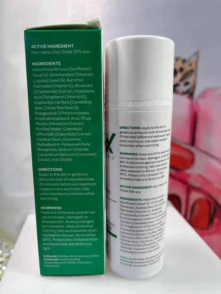 • Active Ingredient: Contains 25% Non-Nano Zinc Oxide, which acts as a physical barrier to reflect UVA, UVB, and UVC rays immediately upon application. • Key Natural Extracts: Formulated with Thuja Plicata (Hinokitiol), known for its anti-inflammatory and antimicrobial properties to soothe and nourish the scalp. • Skin & Eco Friendly: It is certified vegan, 100% organic, reef-safe, and Hawaii compliant. • Suitability: Ideal for sensitive skin and outdoor enthusiasts; it is also baby-safe and ultra-low irritation. • Format: 2.50 oz (70g) cream, made in Australia.