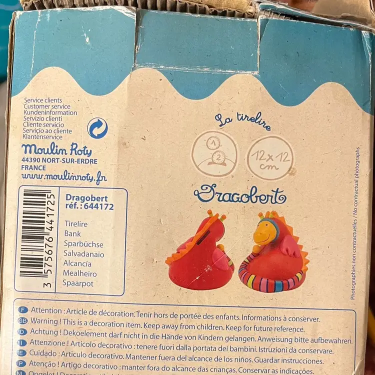 Rare moulin roty bank. Never been used. Comes with box that looks like it has been overused lol