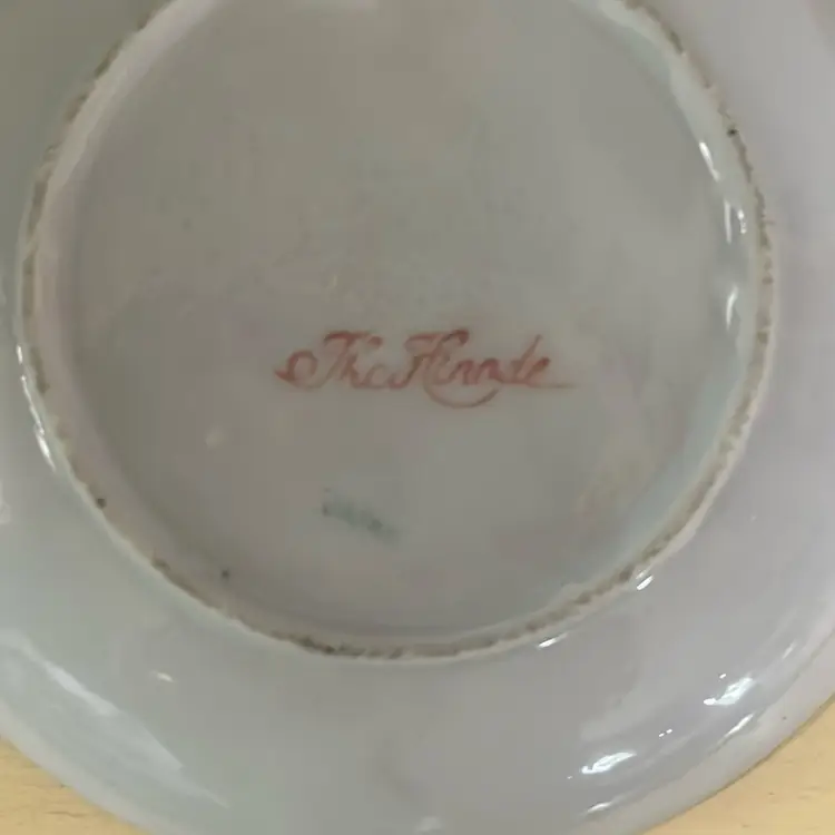 Small has small chip as shown in 1st picture Holds 4oz to rim, saucer is 3.75 round, teacup 2.35” tall. Larger holds 7 oz to rim saucer 5” round, teacup 1.5” tall.