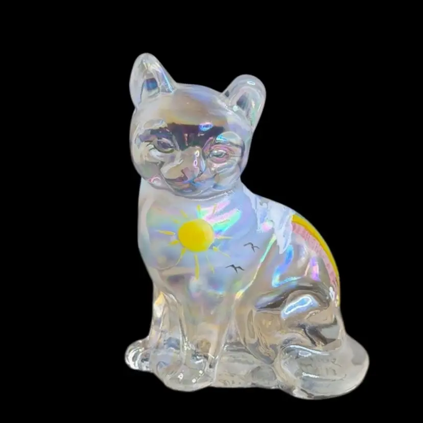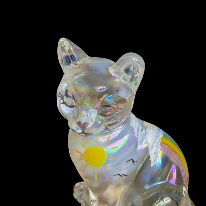 Beautiful “dreams and rainbows” cat figurine, 2005 FENTON exclusive 100 years.