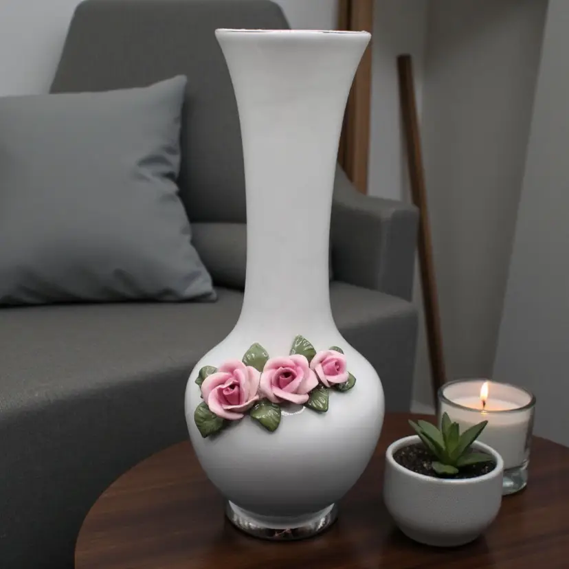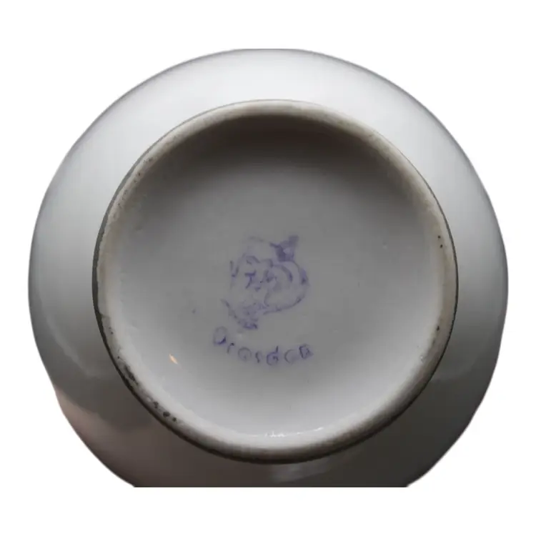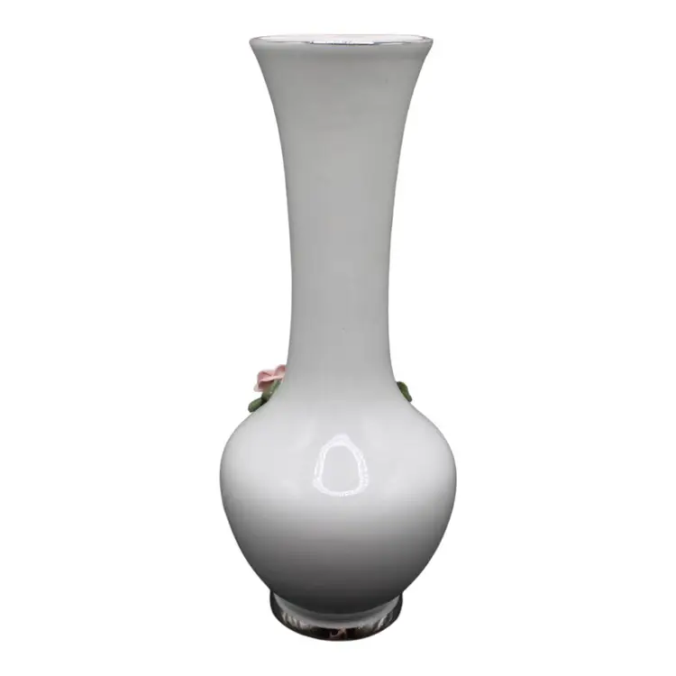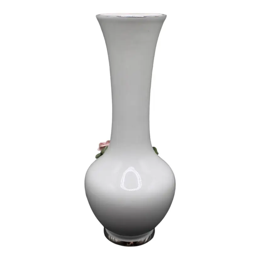 Dresden Vase Applied Roses 7 3/4” Tall 2” opening and 2” base. No chips or cracks.