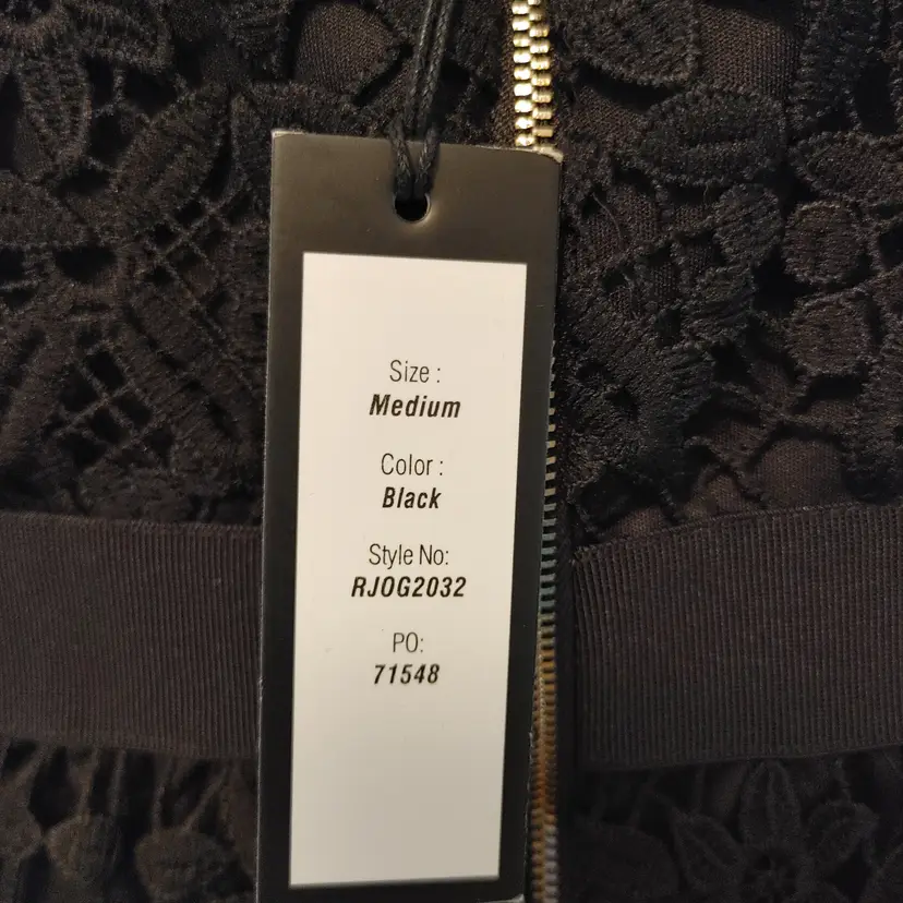 Dress- Brand: Romeo & Juliet Couture. Size Medium. NWT. Black lace dress. Material- 100% polyester. No callouts.