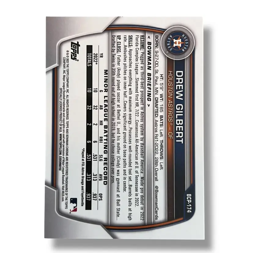 Here We Have a Drew Gilbert 2023 Bowman Chrome Orange Sapphire 53/75 Jersey Number Color Match