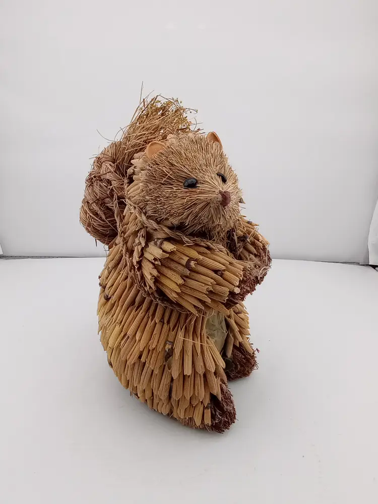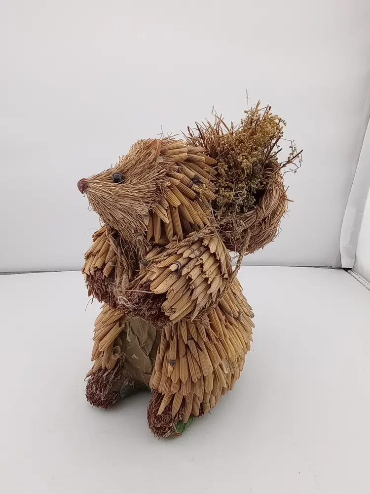 Not sure where he's going, but I have no doubt he'll get there. This is an adorable mouse figurine with a lightweight (styrofoam?) core, covered in dried florals and straw, carrying a back basket.