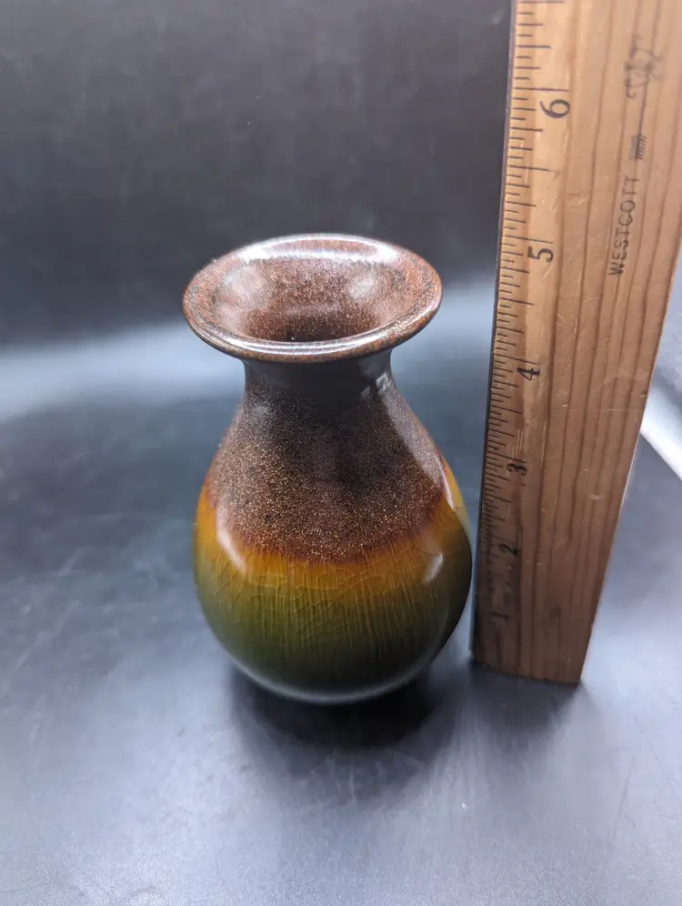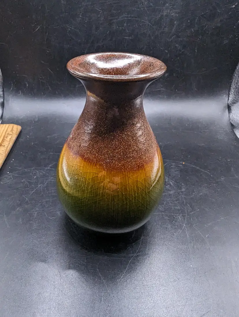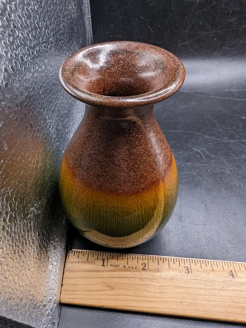 This is a lovely Drip Bud Vase Glaze Pottery Ceramic Art Vintage Brown Red Green Glitter MCM. No chips or cracks. Please see all pictures for condition and measurements.