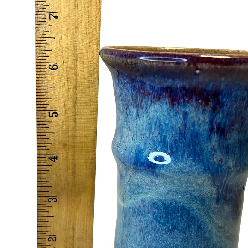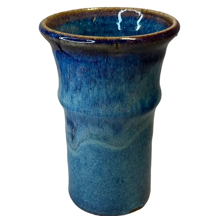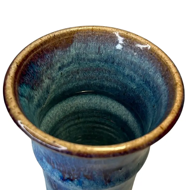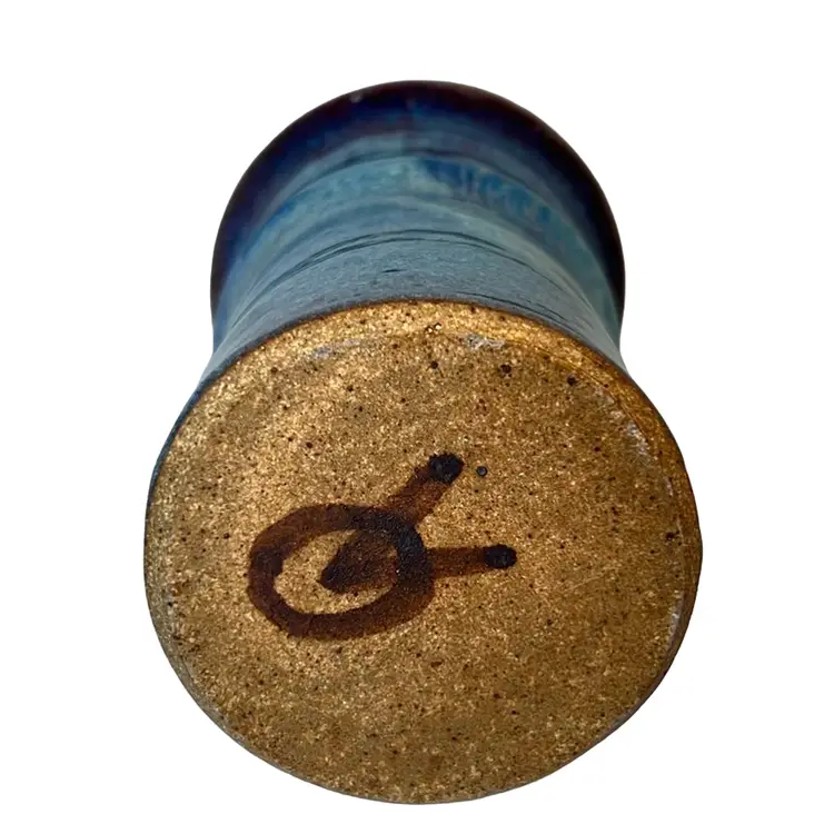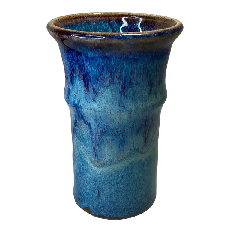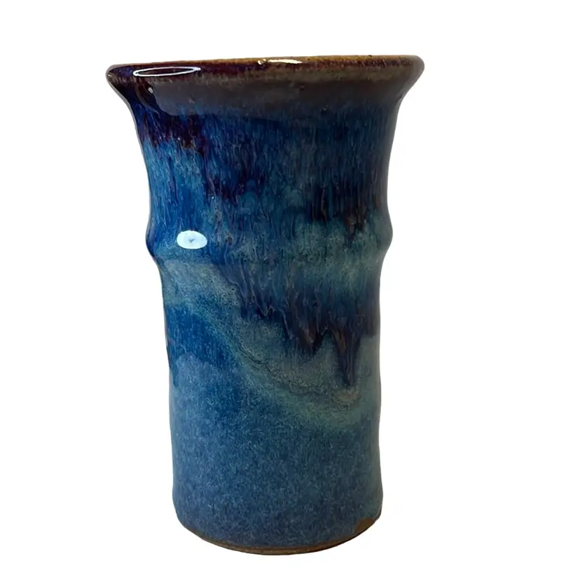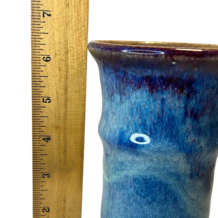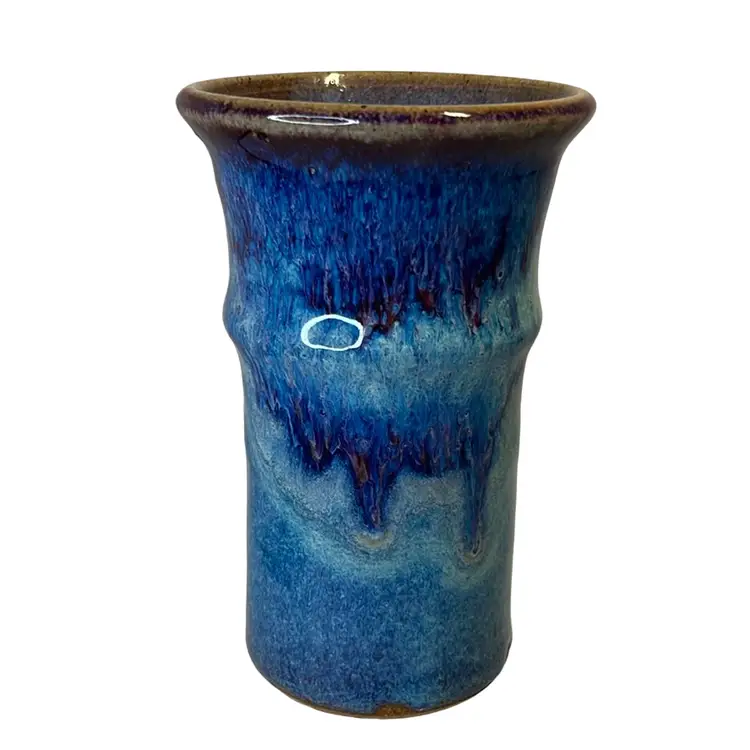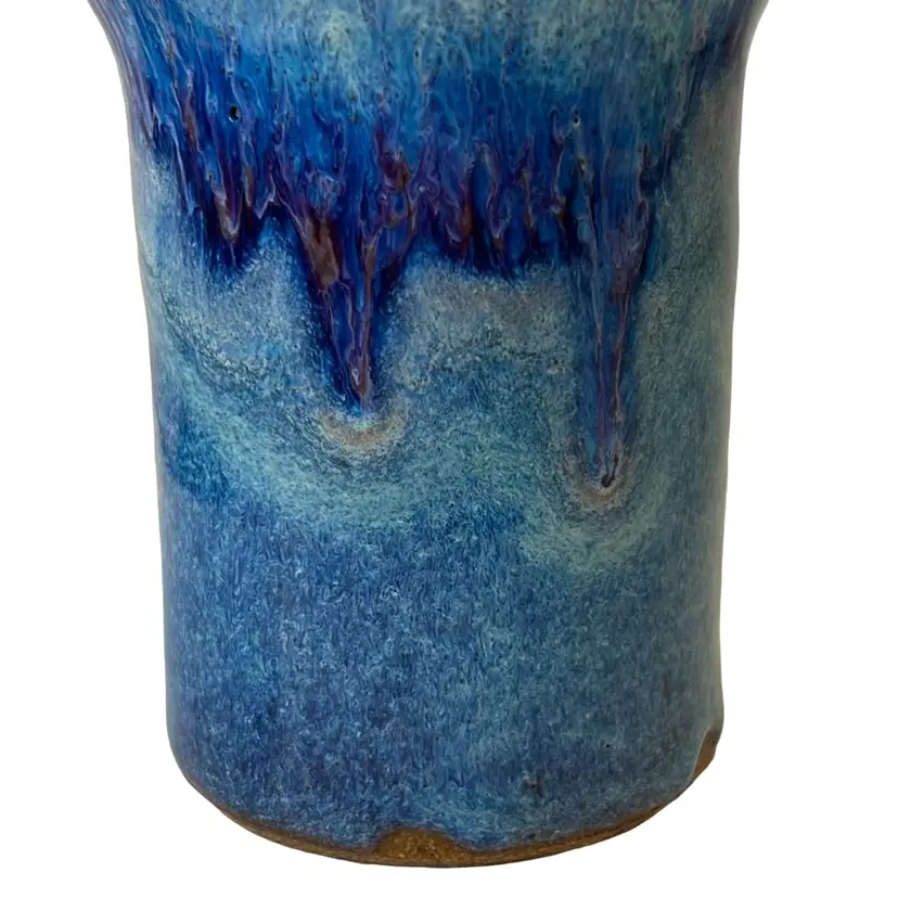Blue & Violet Drip Glaze vase or tumbler. Handmade pottery. Signed VO.