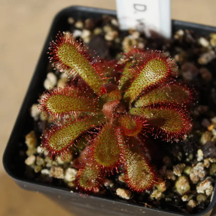 Sundews attract and capture insects with their adhesive leaves, breaking down and digesting their bodies for vital nutrients. Drosera Venusta is a rosetted sundew with paddle shaped leaves. This species originates from the southern tip of South Africa.
