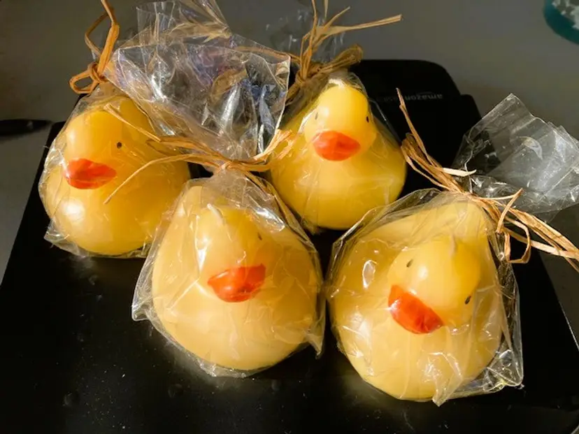 Unused, still in packaging. 4 yellow floating duck candles.