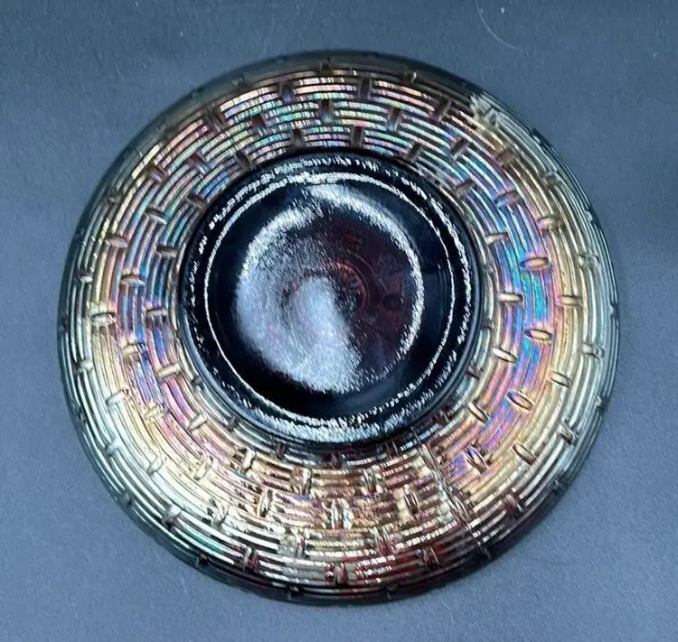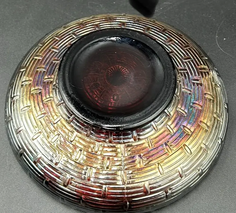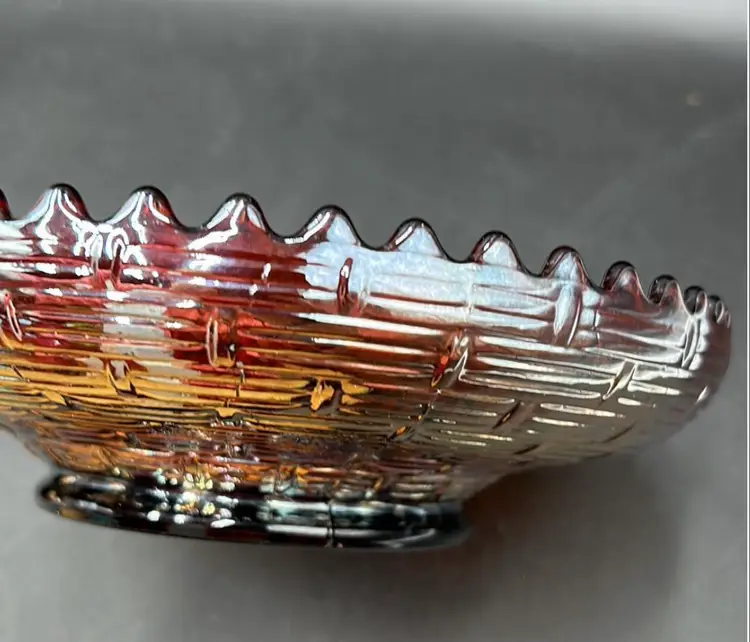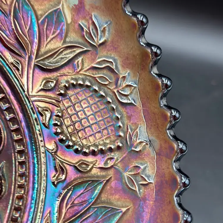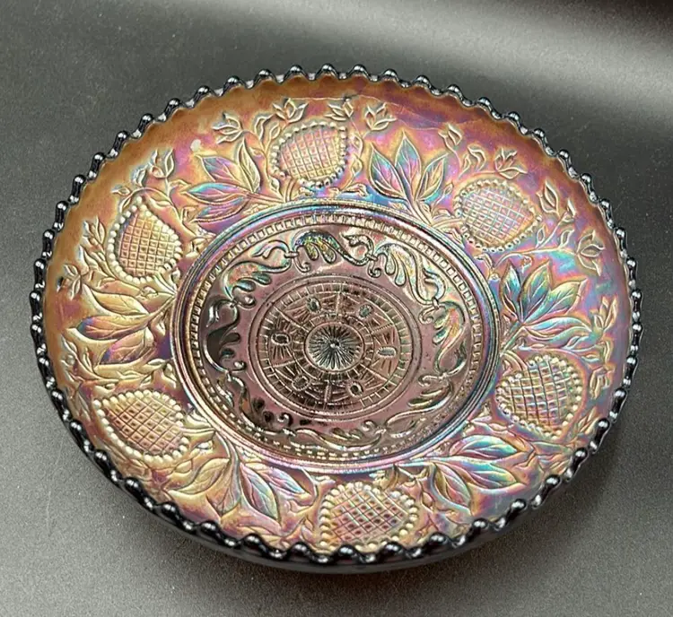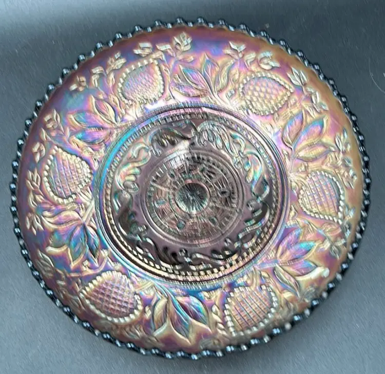 Dugan “Fanciful” Carnival Amethyst Glass Bowl c. 1910. See notes - Straw Mark inside Bowl as shown in pictures.