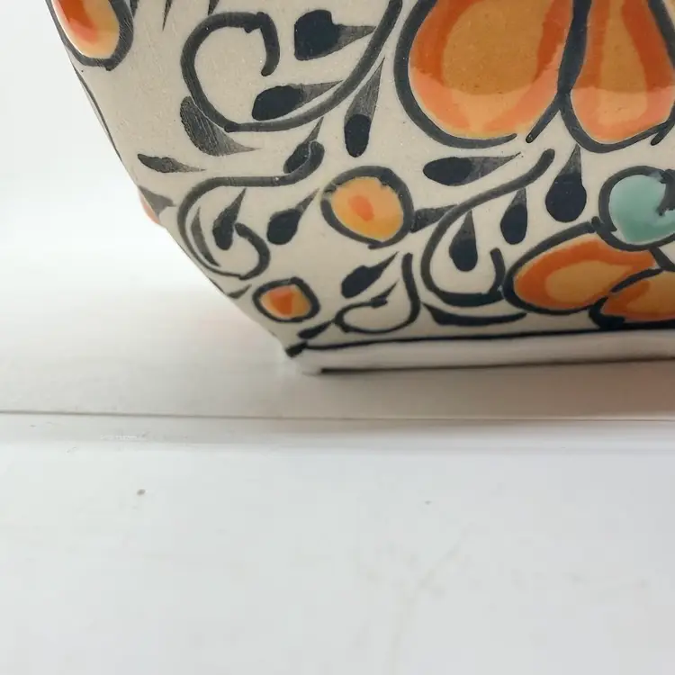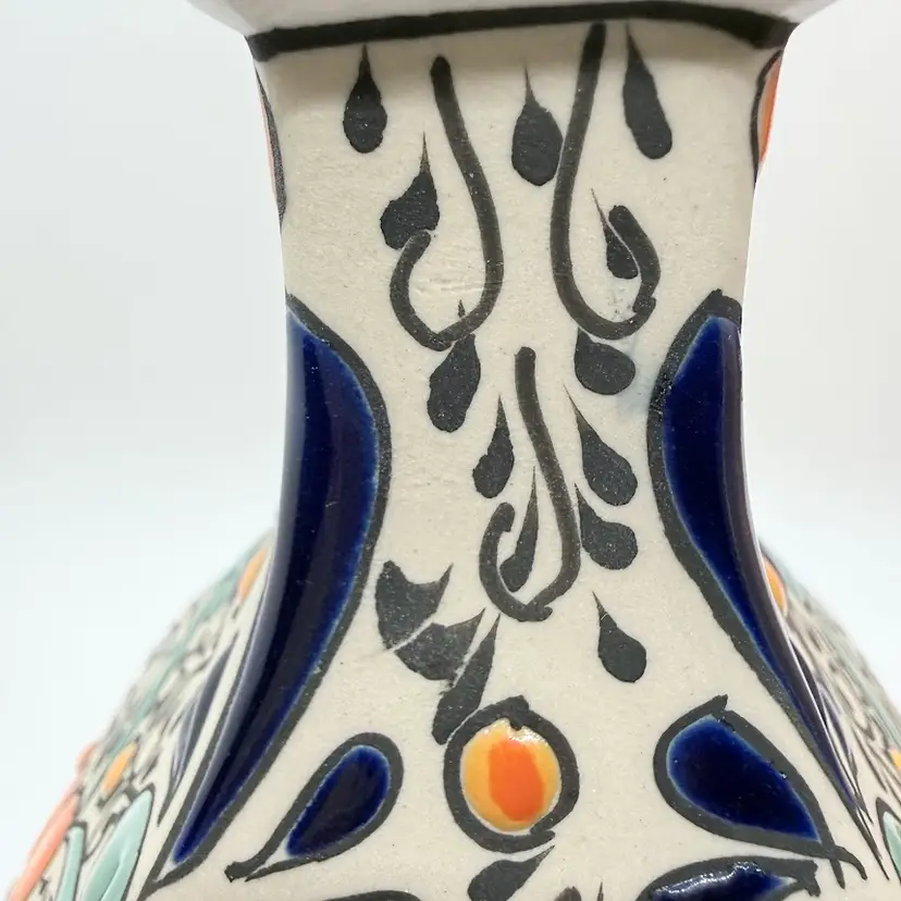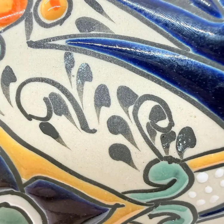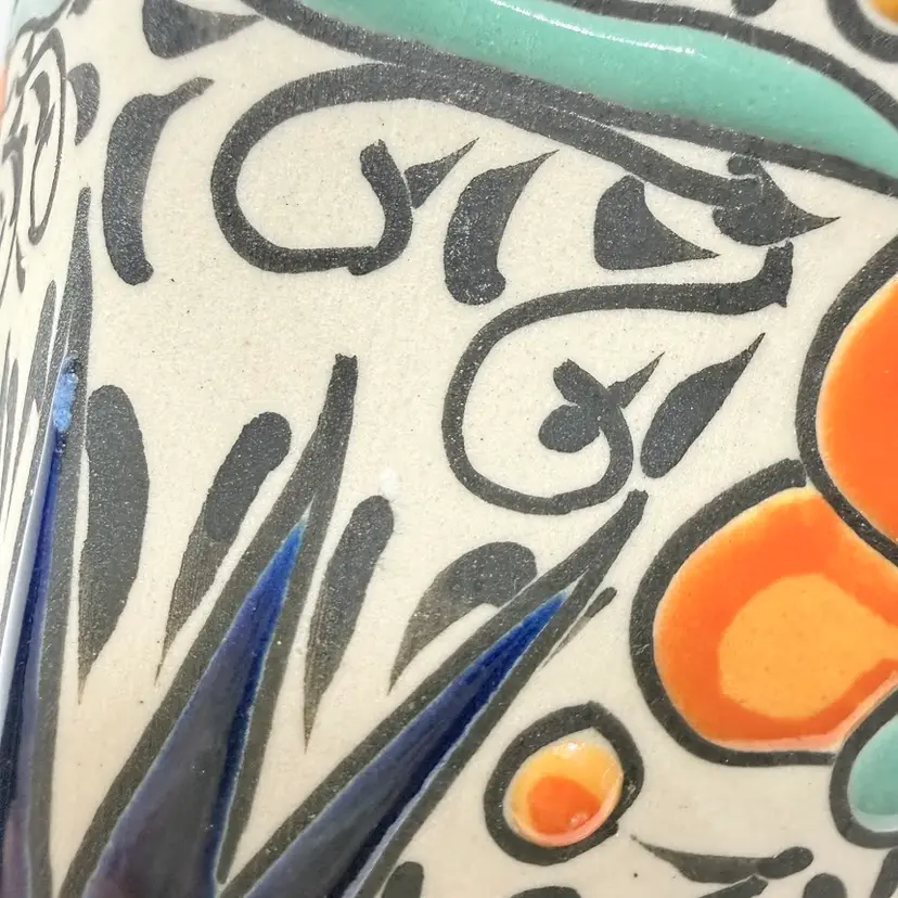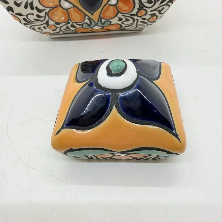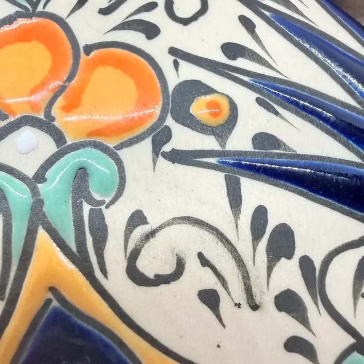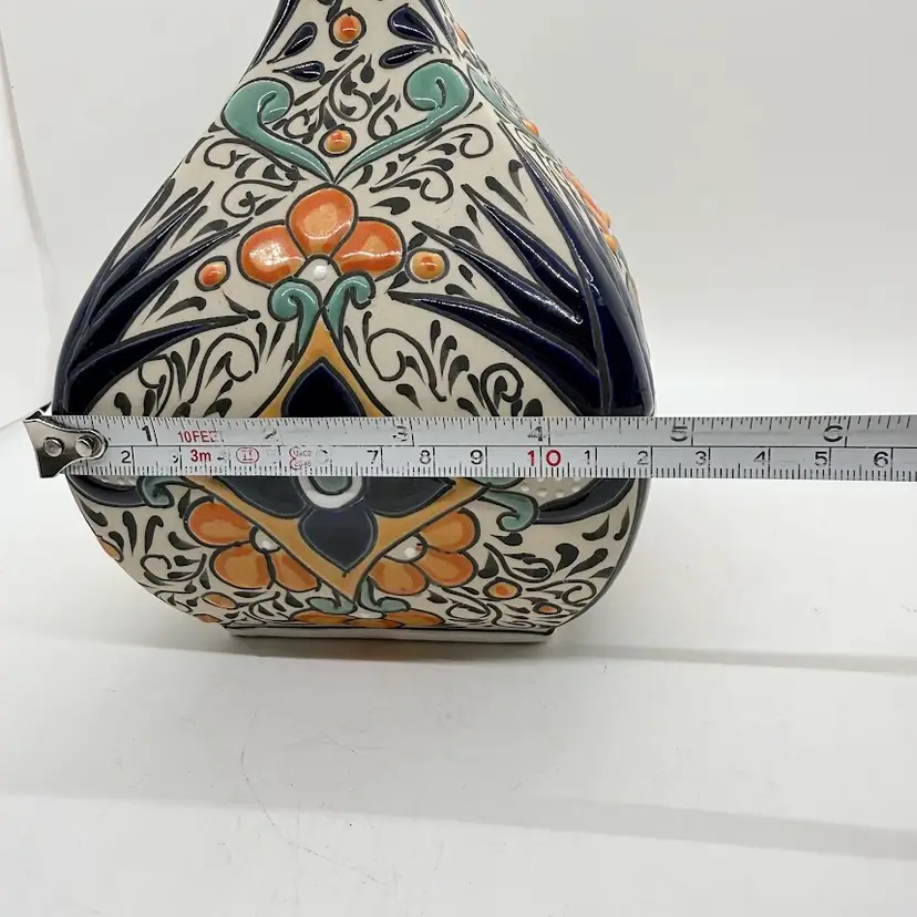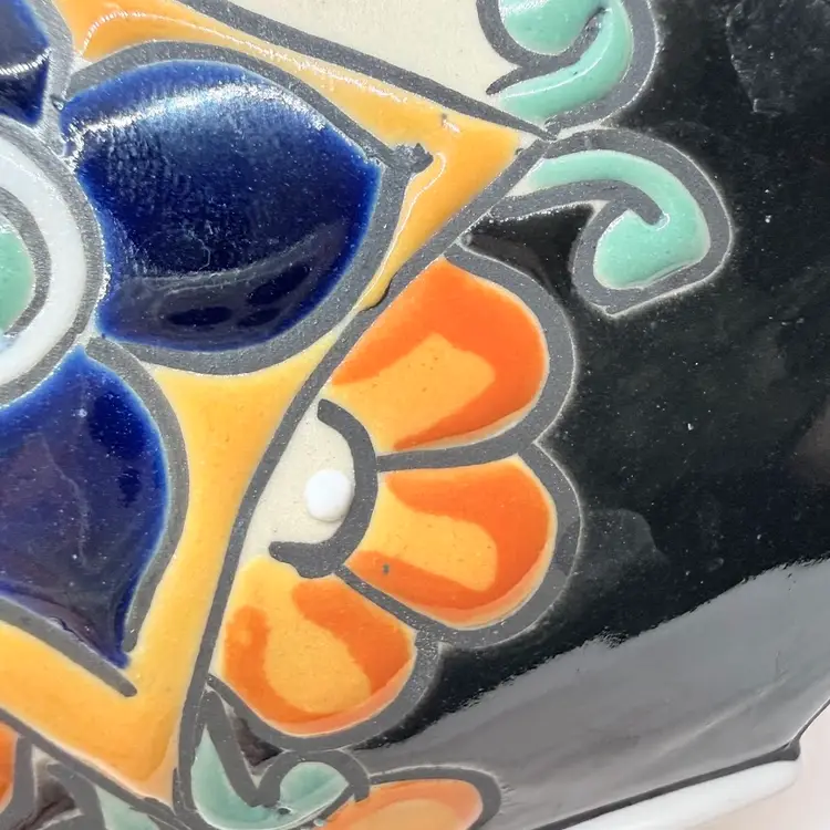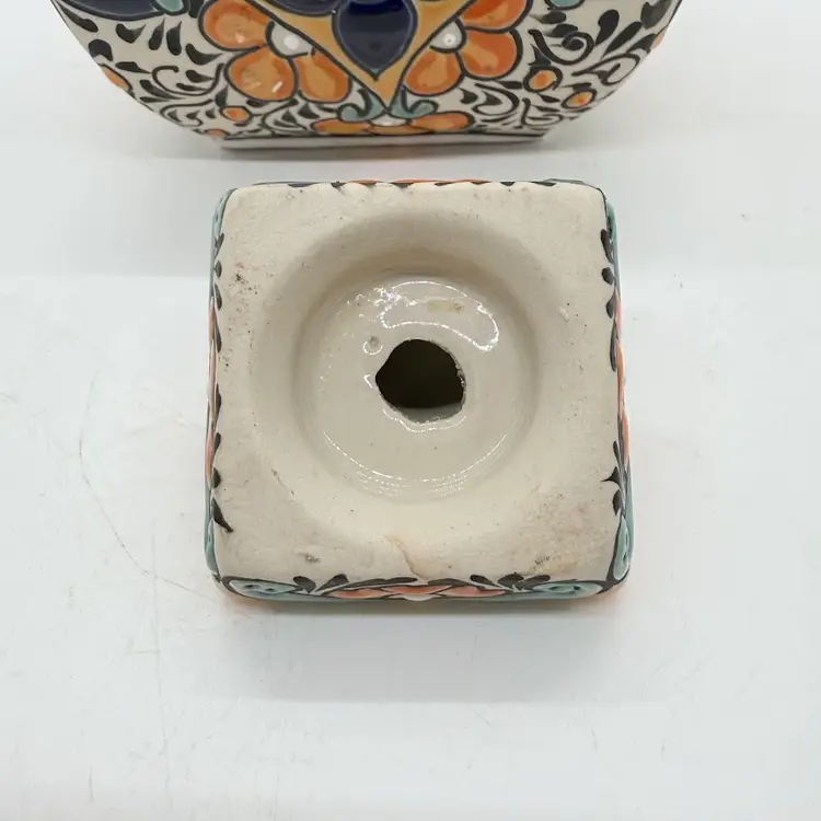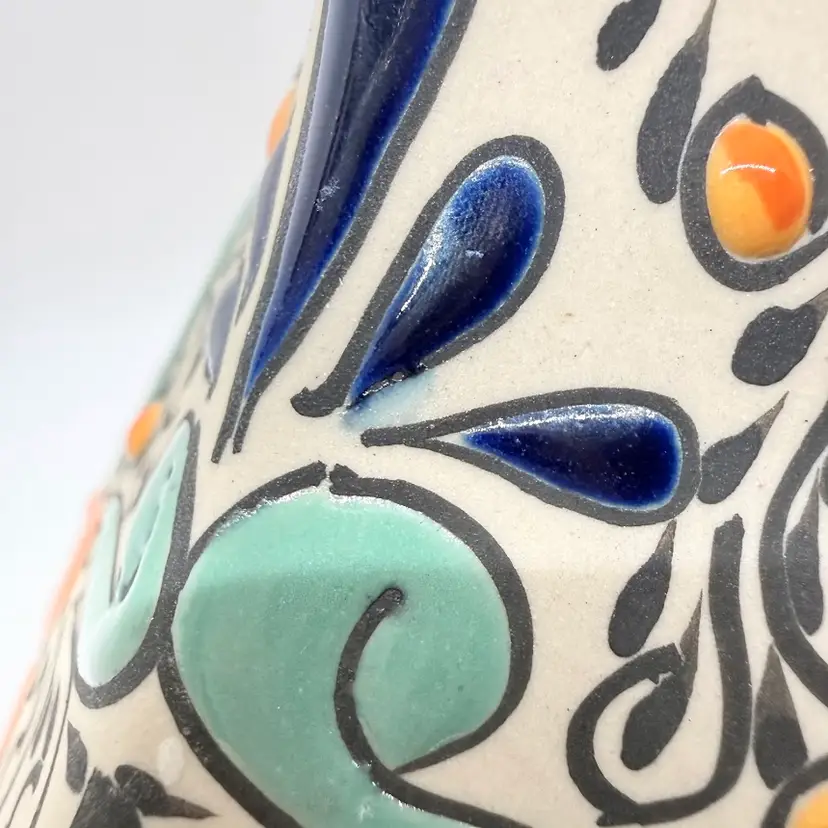 Keywords: handmade, collectible, bright, colorful, folk art, traditional, Latin, genie, narrow neck, home, decor, decorative, display, unique, stoneware, with stopper, gift