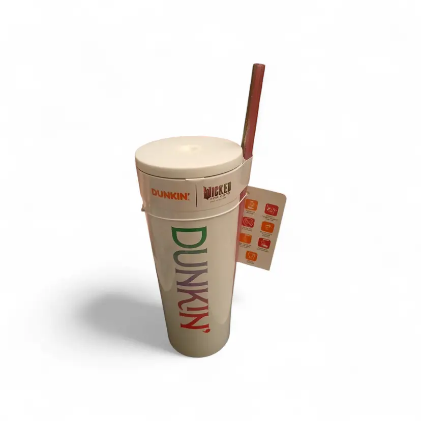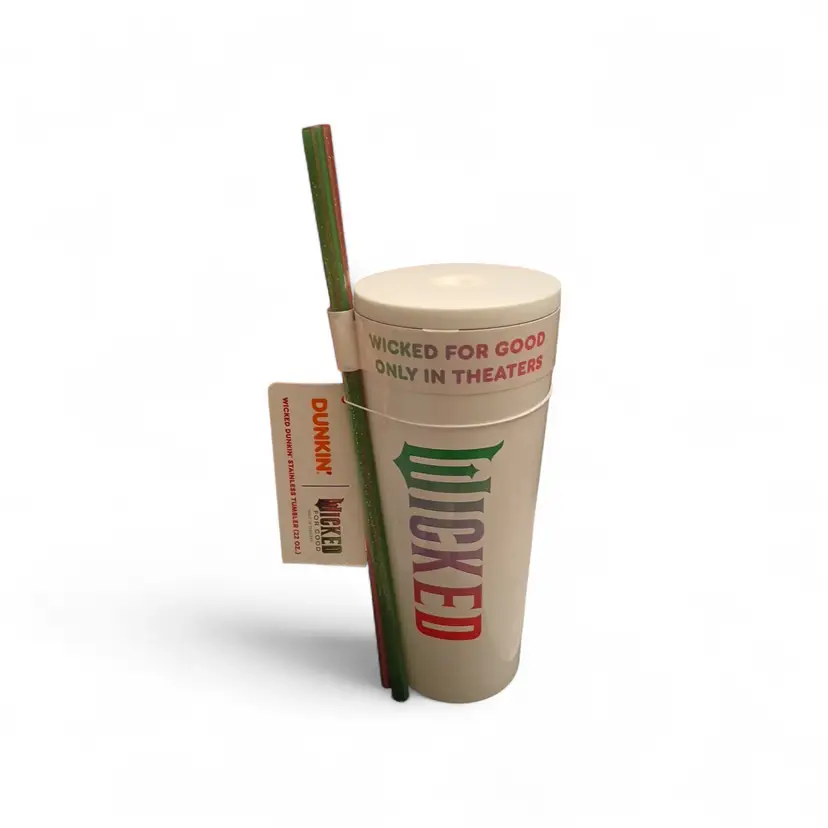 Dunkin’ X Wicked 22 oz Tumbler with Pink and Green Straws. Collector's Item! NWT