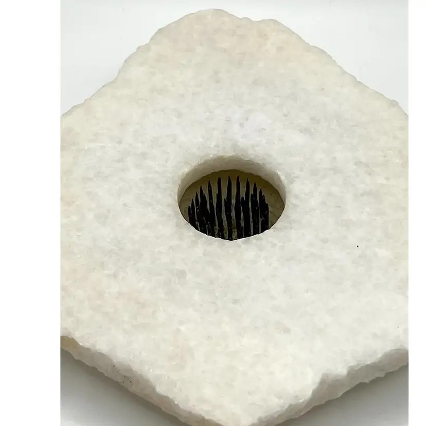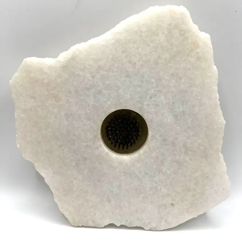 Duraco Products 1992 White Marble Irregular Shape Ikebana Flower Frog Vase. 6.8x7 in.