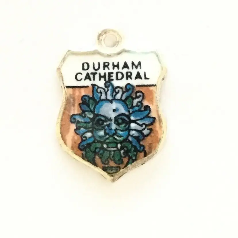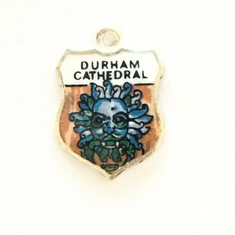 Durham Cathedral English - Vintage Enamel Souvenir Travel Shield Bracelet Charm - 925 Sterling Silver
