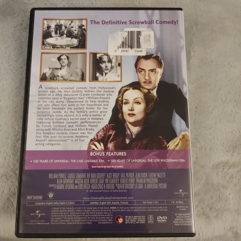 DVD. My Man Godfrey. William Powell and Carole Lombard. Used.
