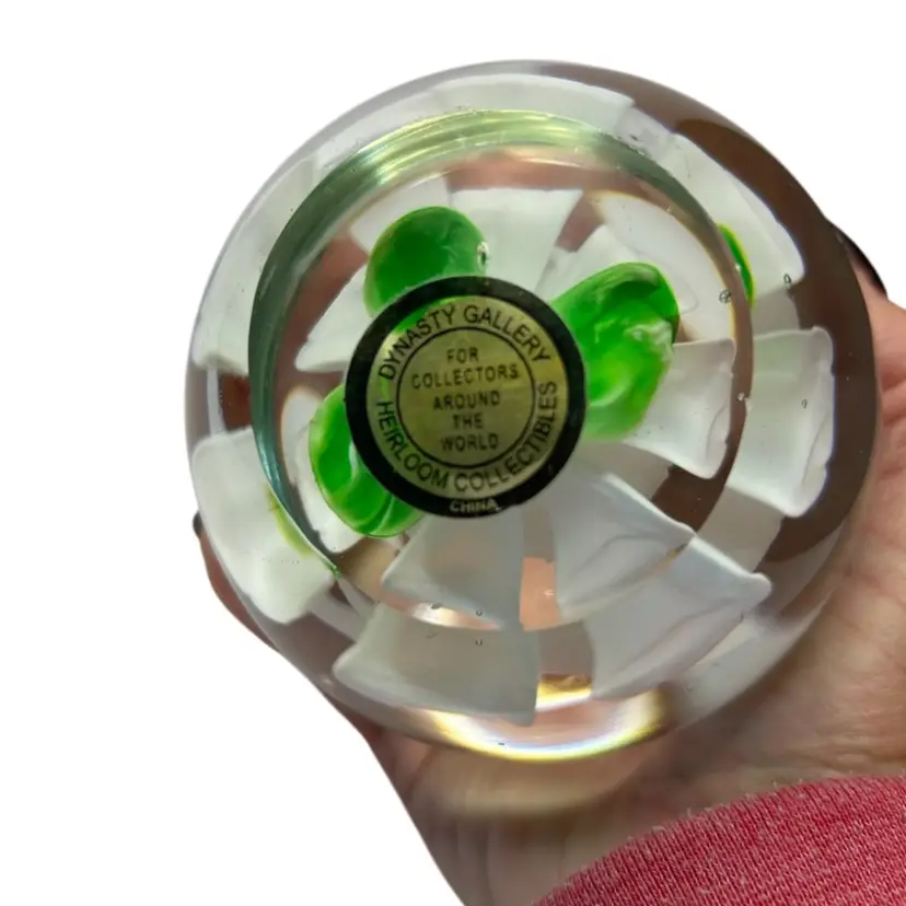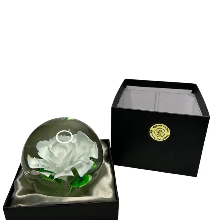 Dynasty Gallery Heirloom Collection @ 3 3/4” Large With White Flower And Green Leaves Comes With Original Box