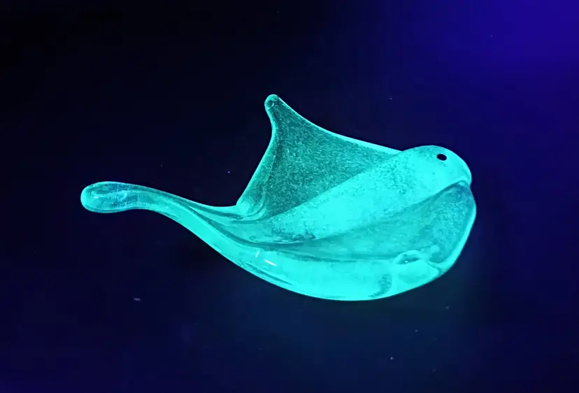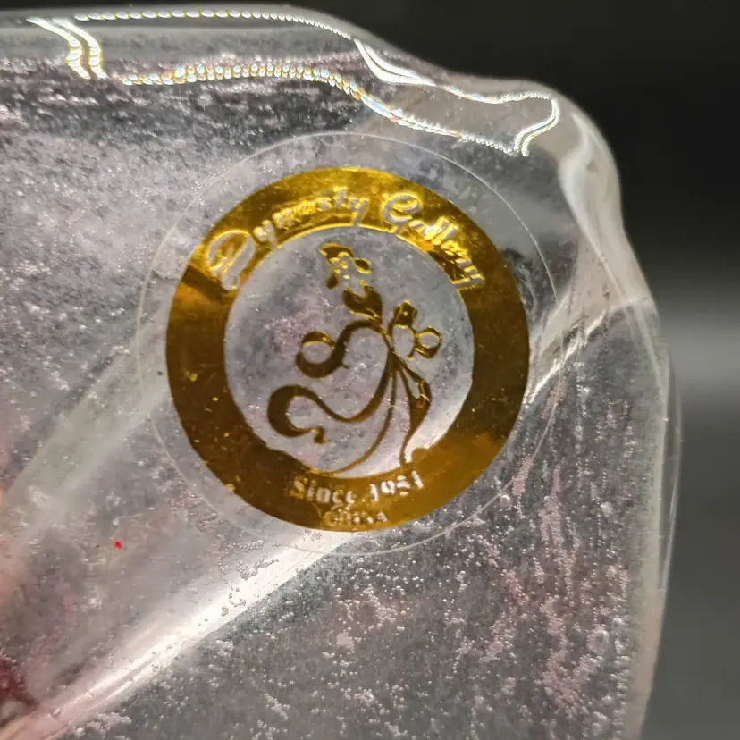 The Dynasty Gallery Manta Ray Clear Glass Paperweight is a unique and decorative piece that features a striking manta ray design. Made from glass with clear flecks, this paperweight is an original piece that glows with a radiance. Perfect for adding a touch of artistry to any desk or shelf, this paperweight showcases a production style of art glass, making it a standout addition to any collection of decorative pottery and glassware.