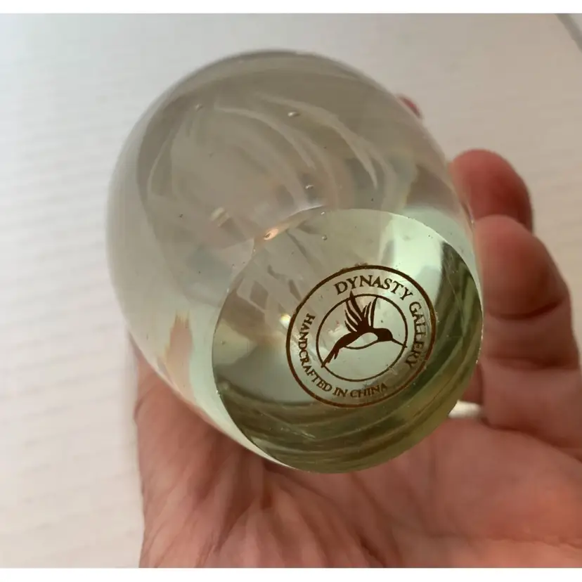 This paperweight is lovely in daylight, but really cool after you have it under a lamp, then turn off the lights. I don’t see any damage on it. Please check out all the photos for condition details and measurements. Thanks for checking out my listings.