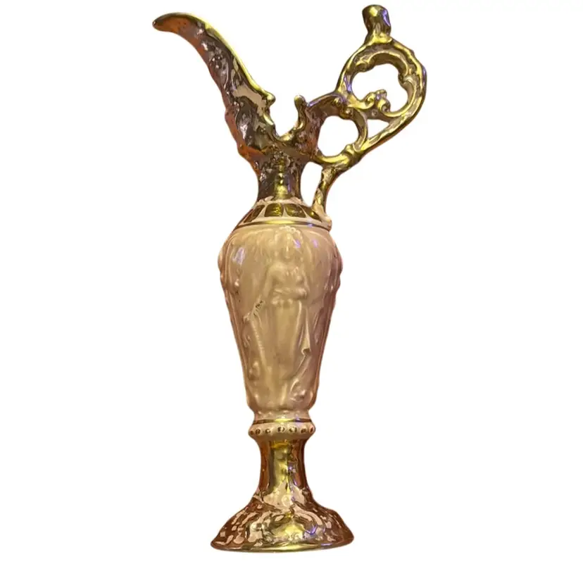 E Palestine Goldra Pink/Gold Porcelain Ewer Pitcher Greek Revival Vintage