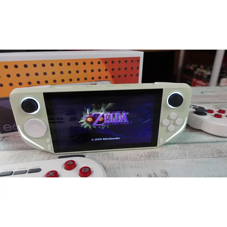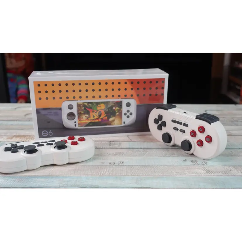 includes handheld, 128gb micro sd card, charge cable, tempered glass screen protector and 2 controller.