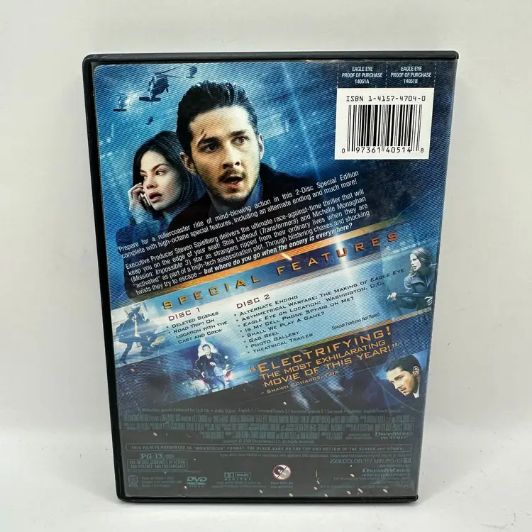 Special two DVD Edition. Executive Producer Steven Spielberg delivers the ultimate race-against-time thriller that will keep you on the edge of your seat! Shia LaBeouf (Transformers) and Michelle Monaghan (Mission: Impossible III) star as strangers ripped from their ordinary lives when they are activated as part or a high-tech assassination plot. Through blistering chases and shocking twists they try to escape-but where do you go when the enemy is everywhere?