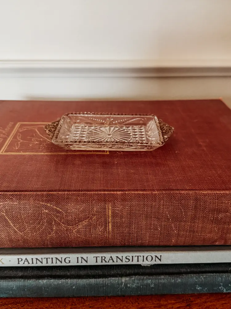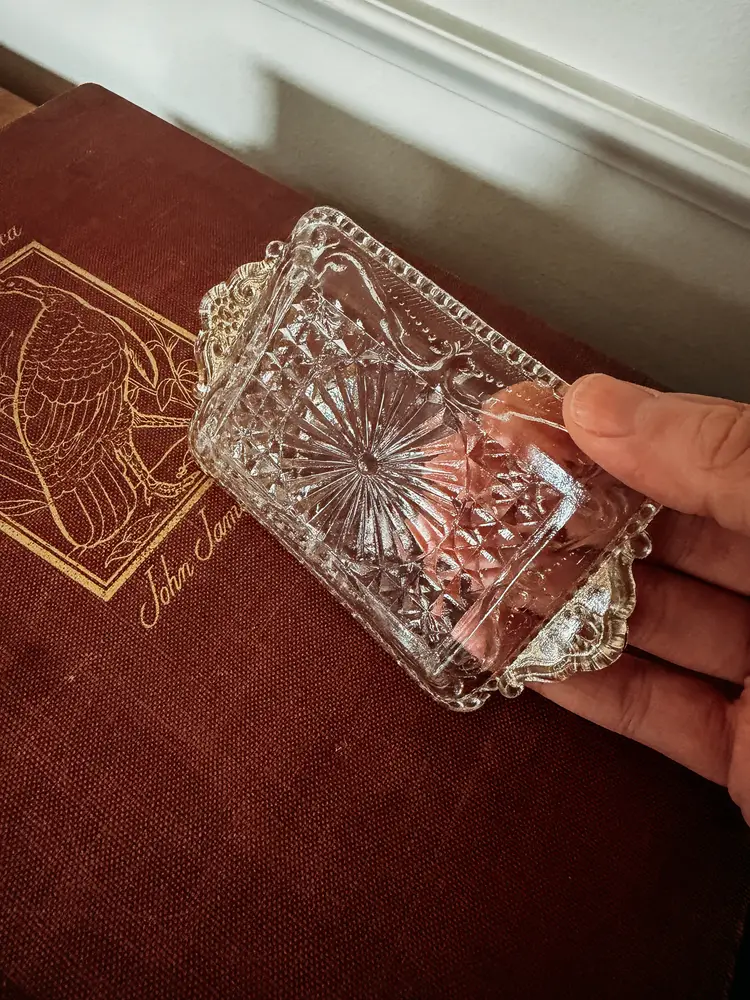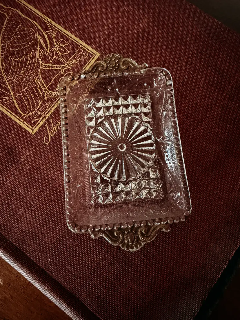 pressed glass with most of its gold detail still intact 5.25x3.25"