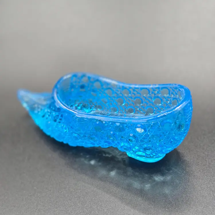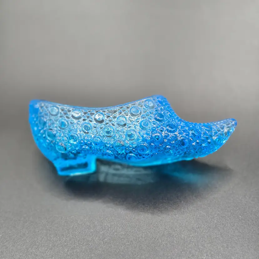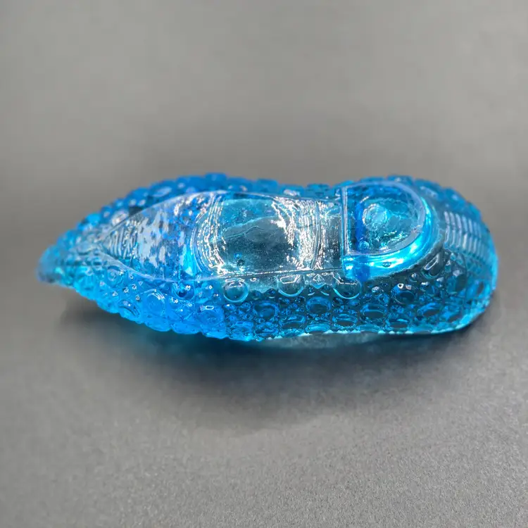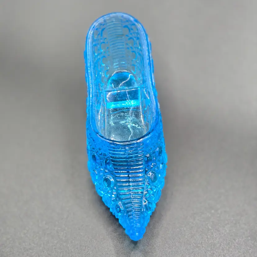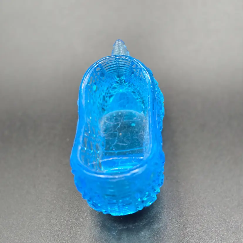 Antique pressed glass capri blue glass slipper collectible! Great addition to your glass collection. 5" long x 1.75" wide x 2" tall. Please check photos as they are part of the description. Item will be well wrapped before shipping. Items from my listings can be combined for shipping if safe to do so.