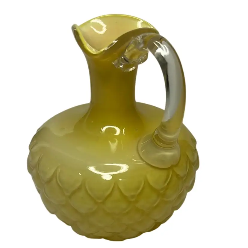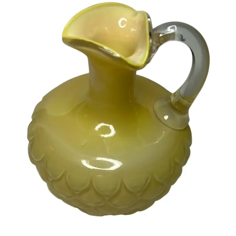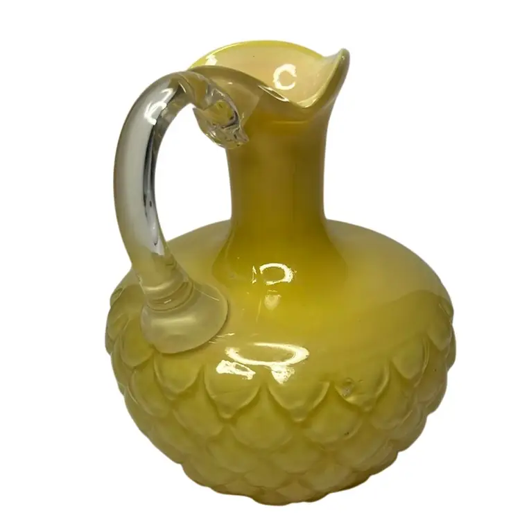 Yellow satin cased glass with diamond pattern - dated 1850 - 1914