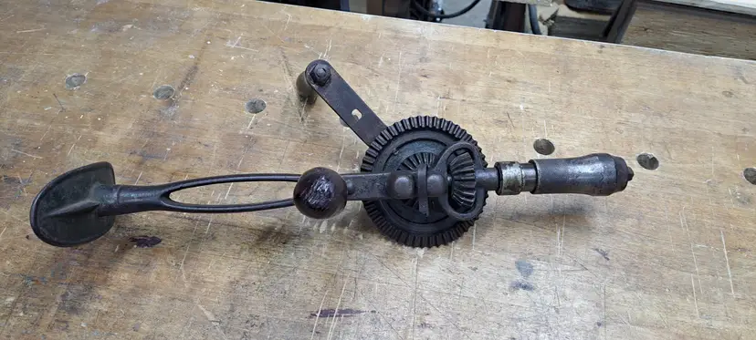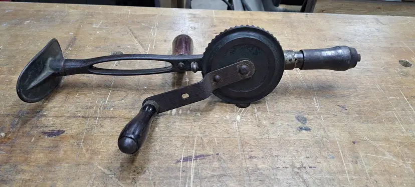 Millers Falls Paten Date Dec 13 1887 Breast Drill, 2 speed The stationary handle has been replaced at some point in the past. I got this only because it's MIllers Falls and I prefer there (and there Craftsman stamped) woodworking tools. I have not used this as due to some odd bone issues I can not push weight against my breast or stomach, I assume it's cancer, but refuse to go to DR. Anyway, I can't use this tool, even though its cool and looks like fun to use, it has just been hanging on the wall for over a year.