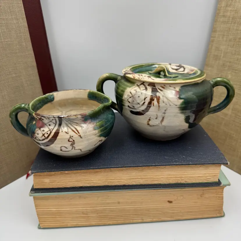 Part of a tea service made for the export or for a Japanese home serving western-style tea. Japanese were less inclined to make expanded tea set, but sets of teapot, creamer and sugar bowl were not uncommon. This sugar bowl and creamer might have been part of such a set.