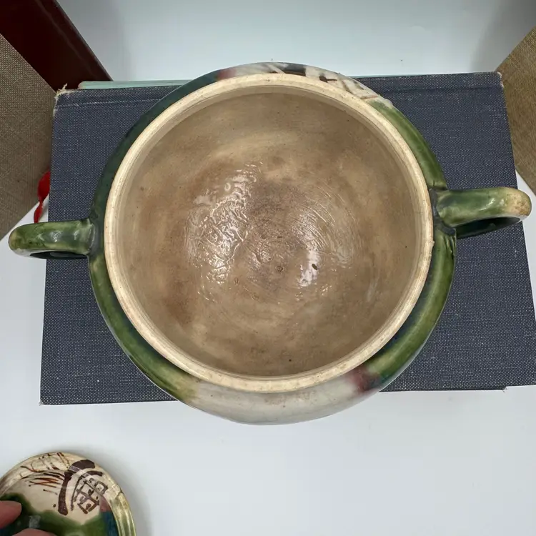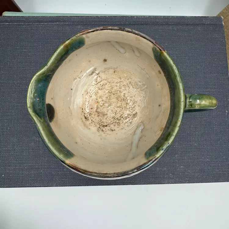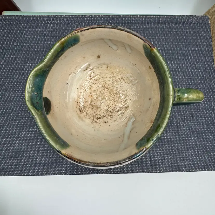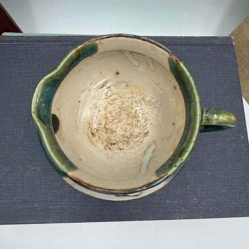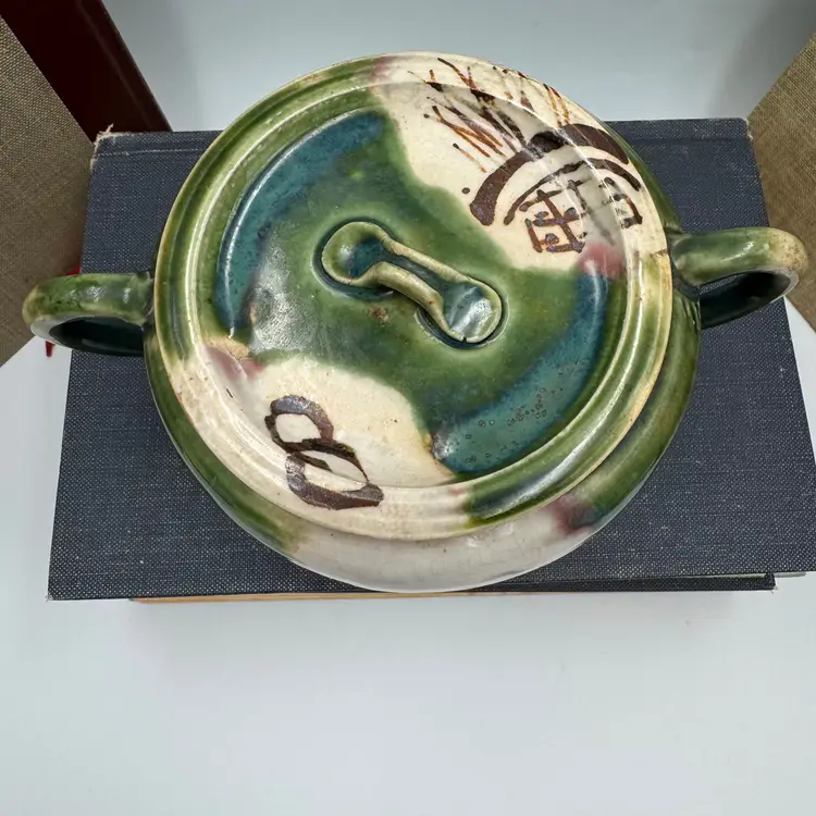 Antique Oribe Stoneware set. In excellent condition, no damage. Finely made stoneware, light and carefully crafted and glazed by an Oribe potter in the traditional green, copper and blue.