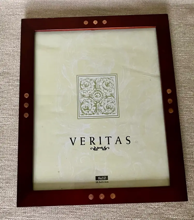 Display your cherished memories in this unique and stylish photo frame from Veritas. The frame is made of a combination of wood, glass, cardboard, and copper, with a beautiful red cherry and copper color scheme. It is suitable for all occasions and can hold one photo of size 8 x 10 inches. The frame can be placed on a tabletop or mounted on a wall, thanks to its free-standing or wall-mounting options.