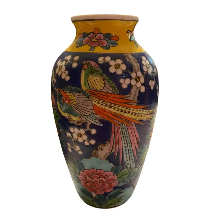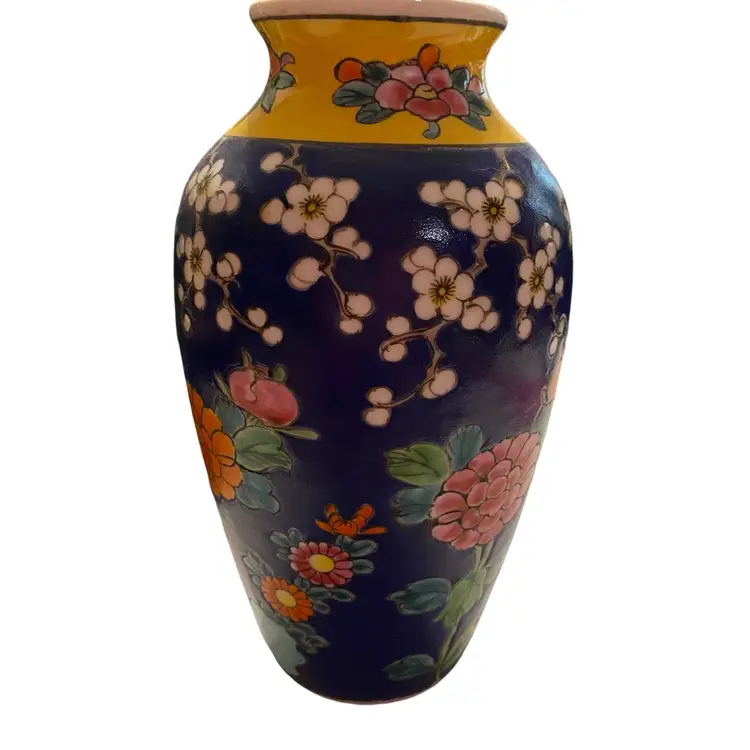Early 20th Century Hand Enameled Japanese Cloissoné Vase 7.5in tall