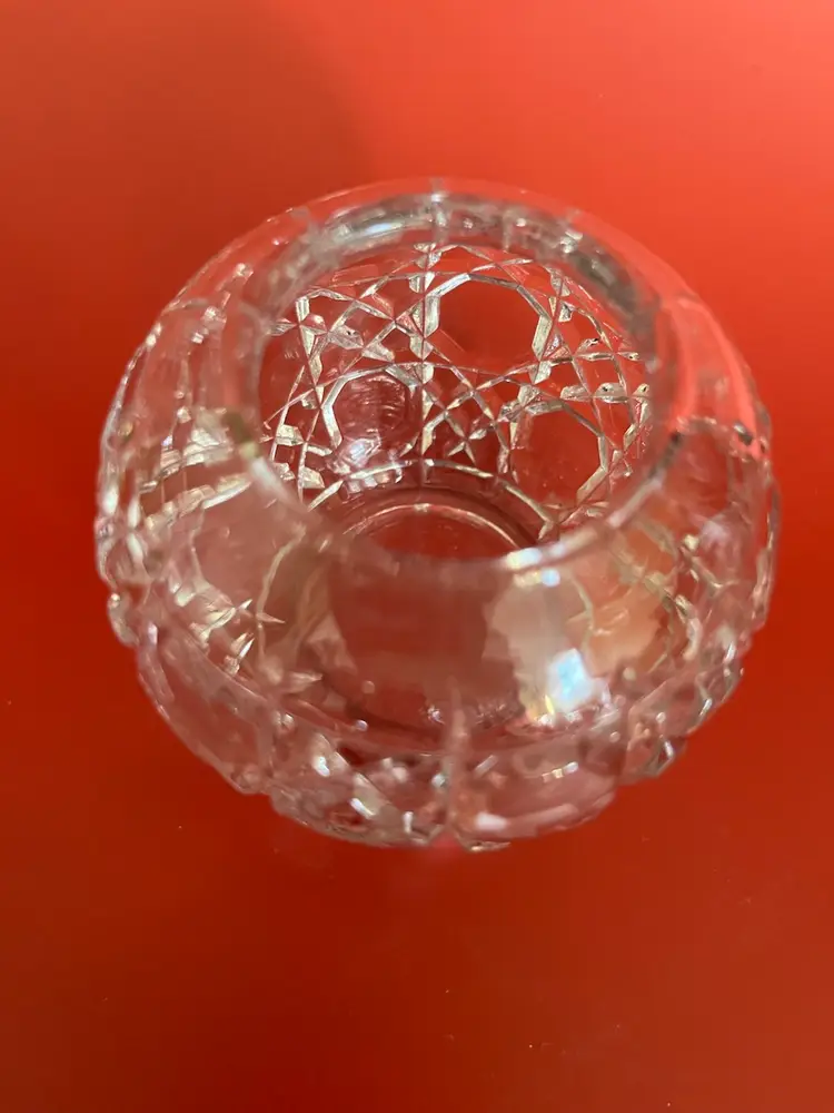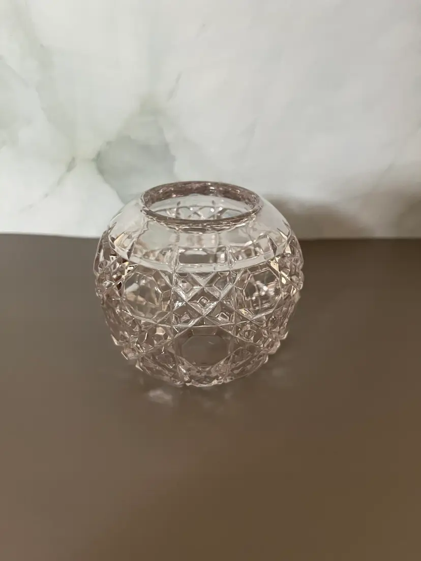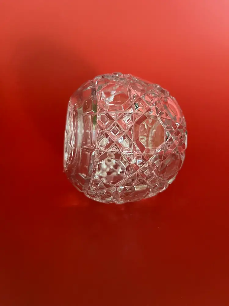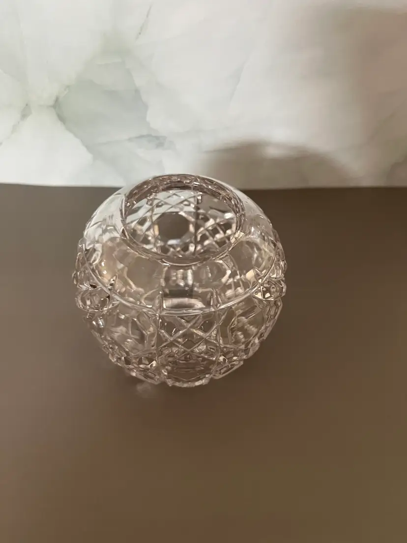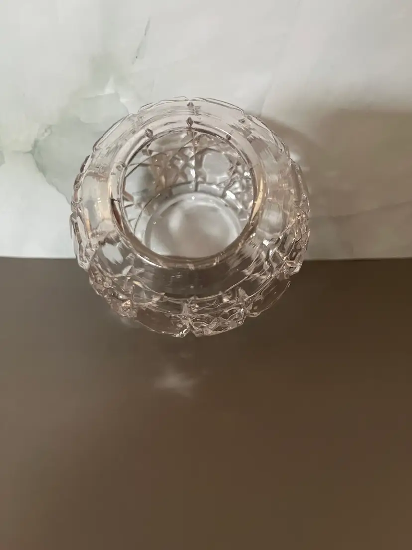 This delicate bowl features an unmarked brand, clear color, and American style. It is an original piece that was made in the United States. It can be used as a tea light or as a beautiful decorative piece.It is in excellent condition with no chips scratches or cracks.